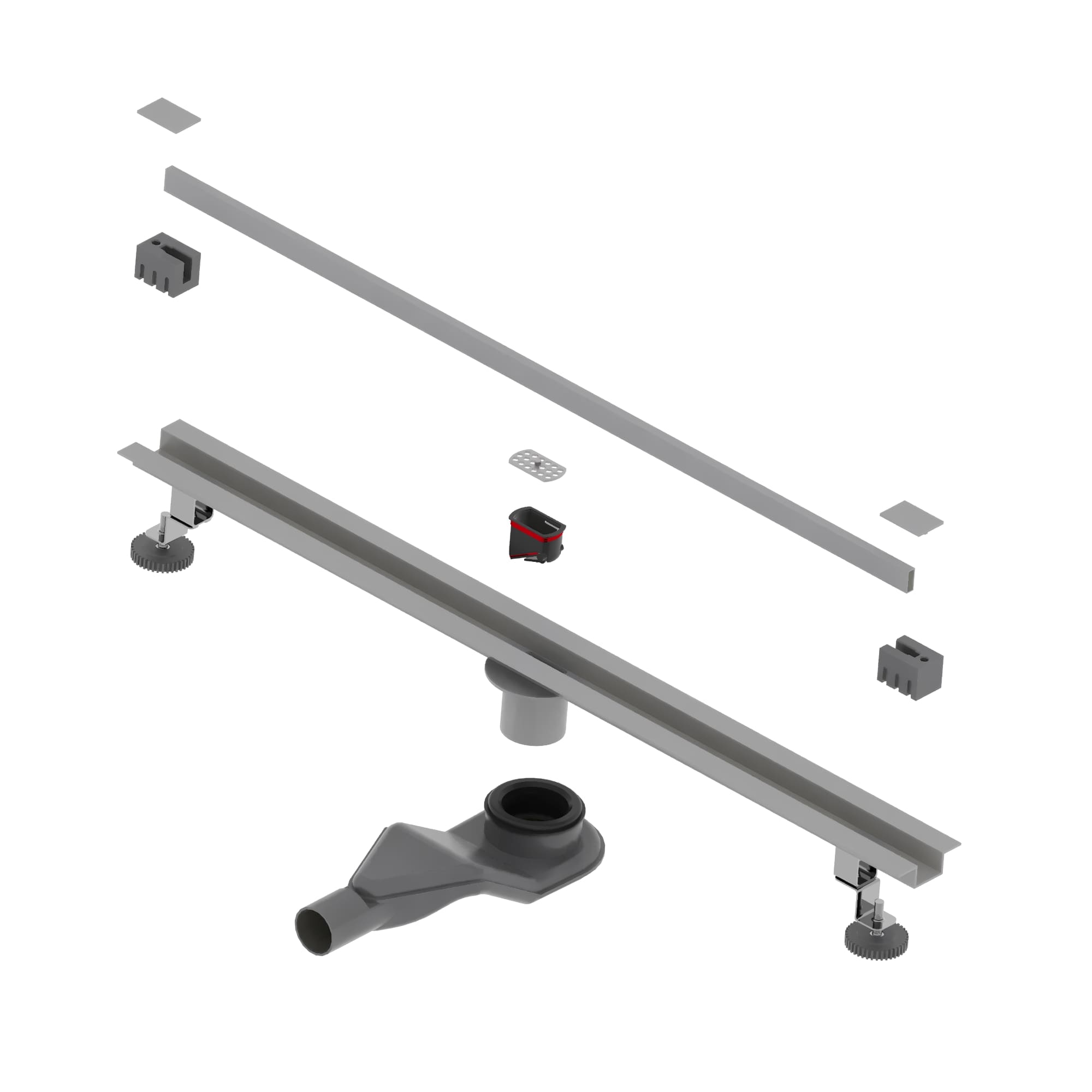 Месторасположение дренажной системы должно быть запланировано заблаговременно на этапе черновой отделки, чтобы сделать подводку канализационной трубы. Также должно быть предусмотрено заглубление в полу или в подиуме для скрытой части трапа. Высоту душевого линейного слива можно регулировать с помощью стальных опор в диапазоне 94-122 мм.