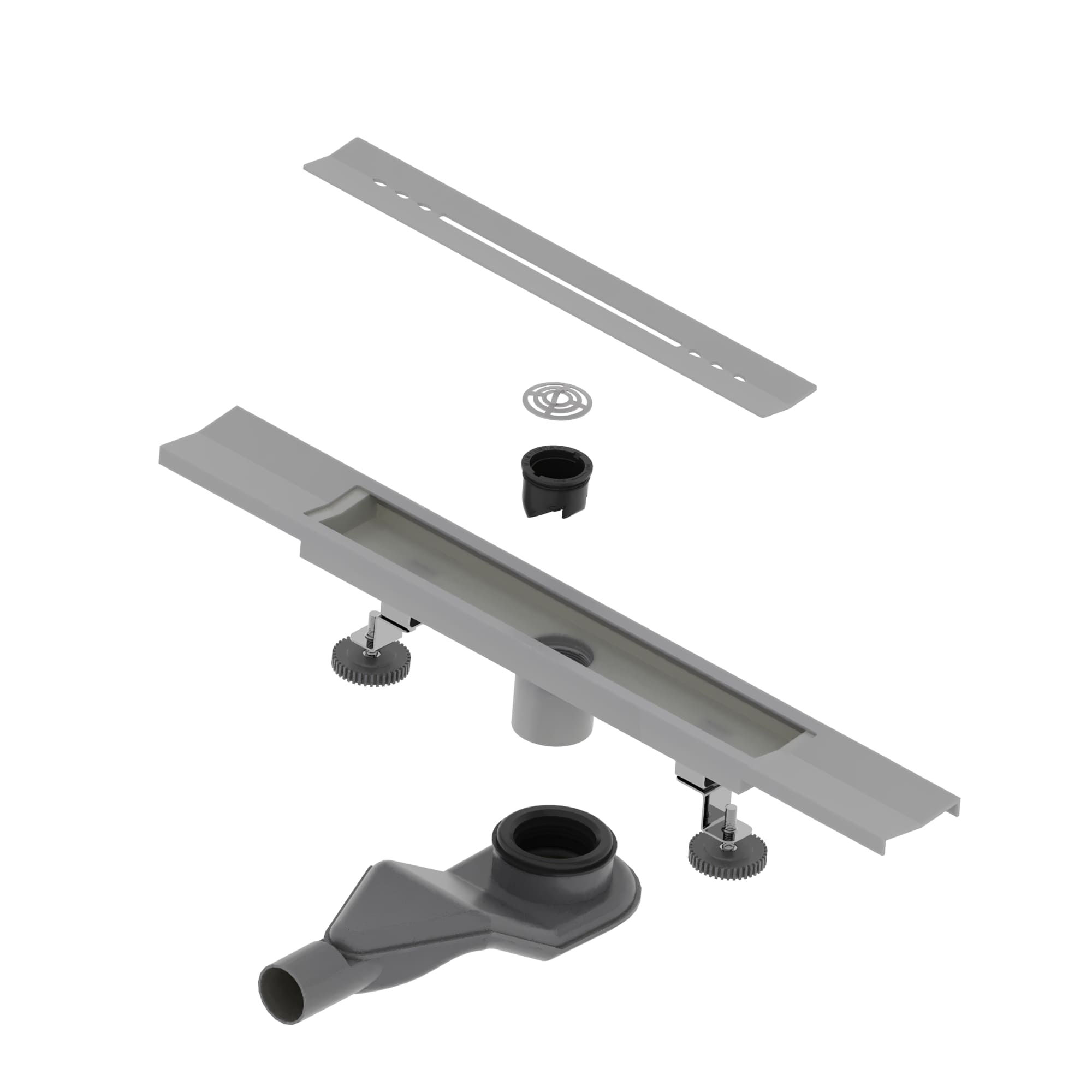 Душевой лоток комплектуется сифоном с выходом трубы диаметром на 50 мм для подключения к канализационной трубе, в данной системе переходников не требуется. Для эффективного стока воды нужно предусмотреть уклон облицовочной плитки в сторону сливного жёлоба и небольшой уклон канализационной трубы от соединения с сифоном до входа в стену. На этапе монтажа обязательно до укладки облицовочной плитки уложите вокруг лотка гидроизоляционную ленту, которым комплектуется трап. Облицовочная плитка укладывается вровень с бортами лотка.