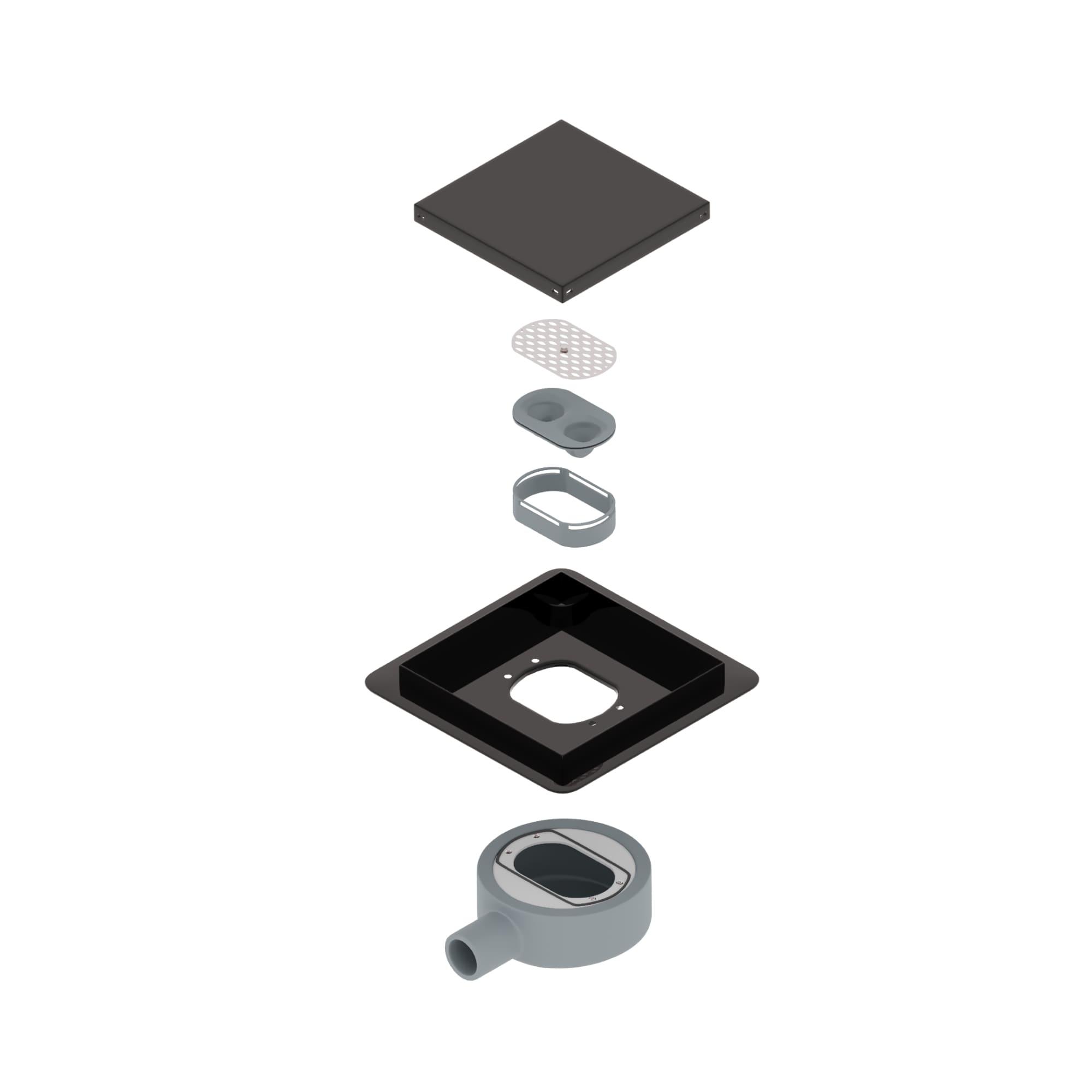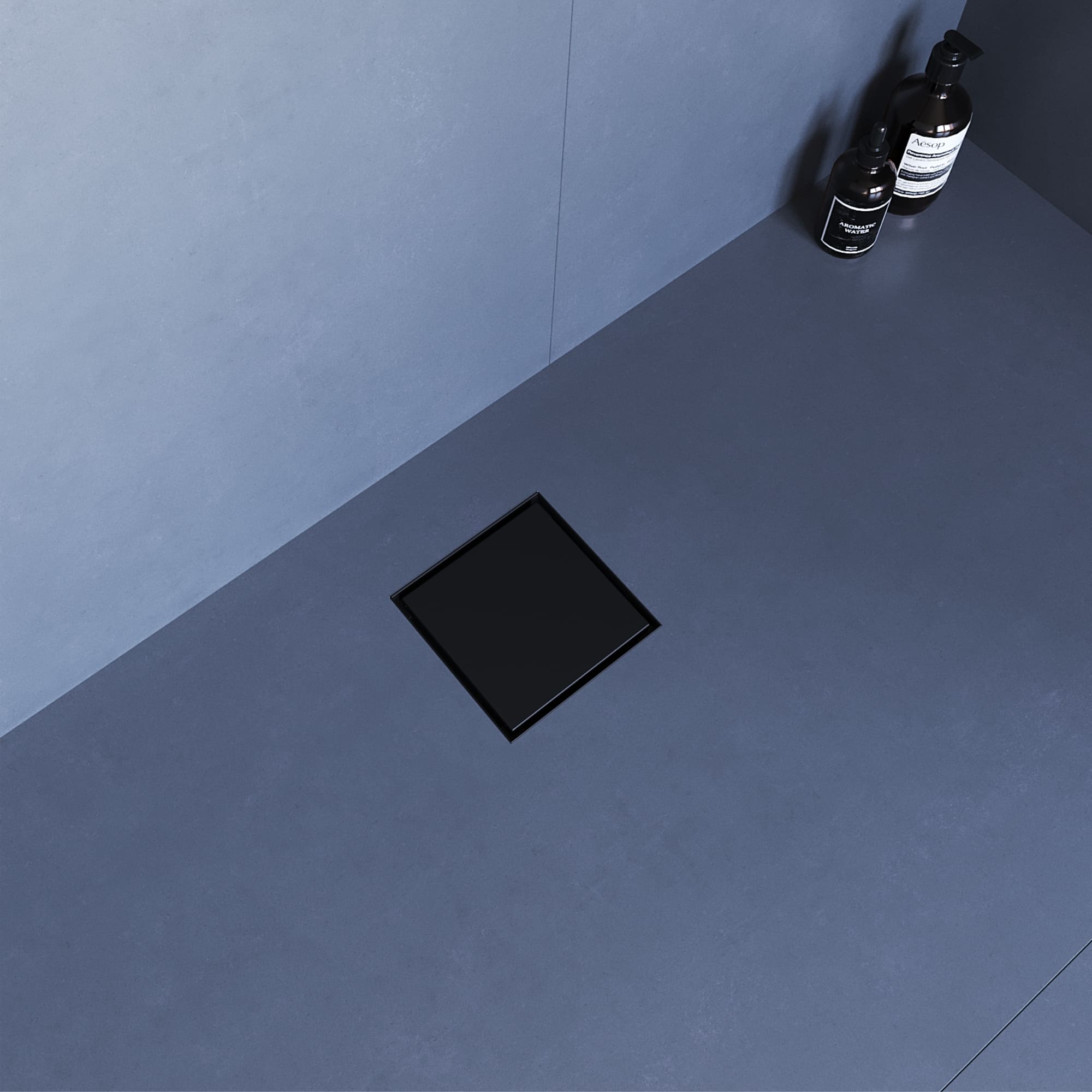 Душевой трап RGW SDR-10 квадратный, черный, с двухсторонней металлической крышкой, с одной стороны металл, с другой под вкладку керамической плитки, толстостенный, сифон сухой и гидрозатвор