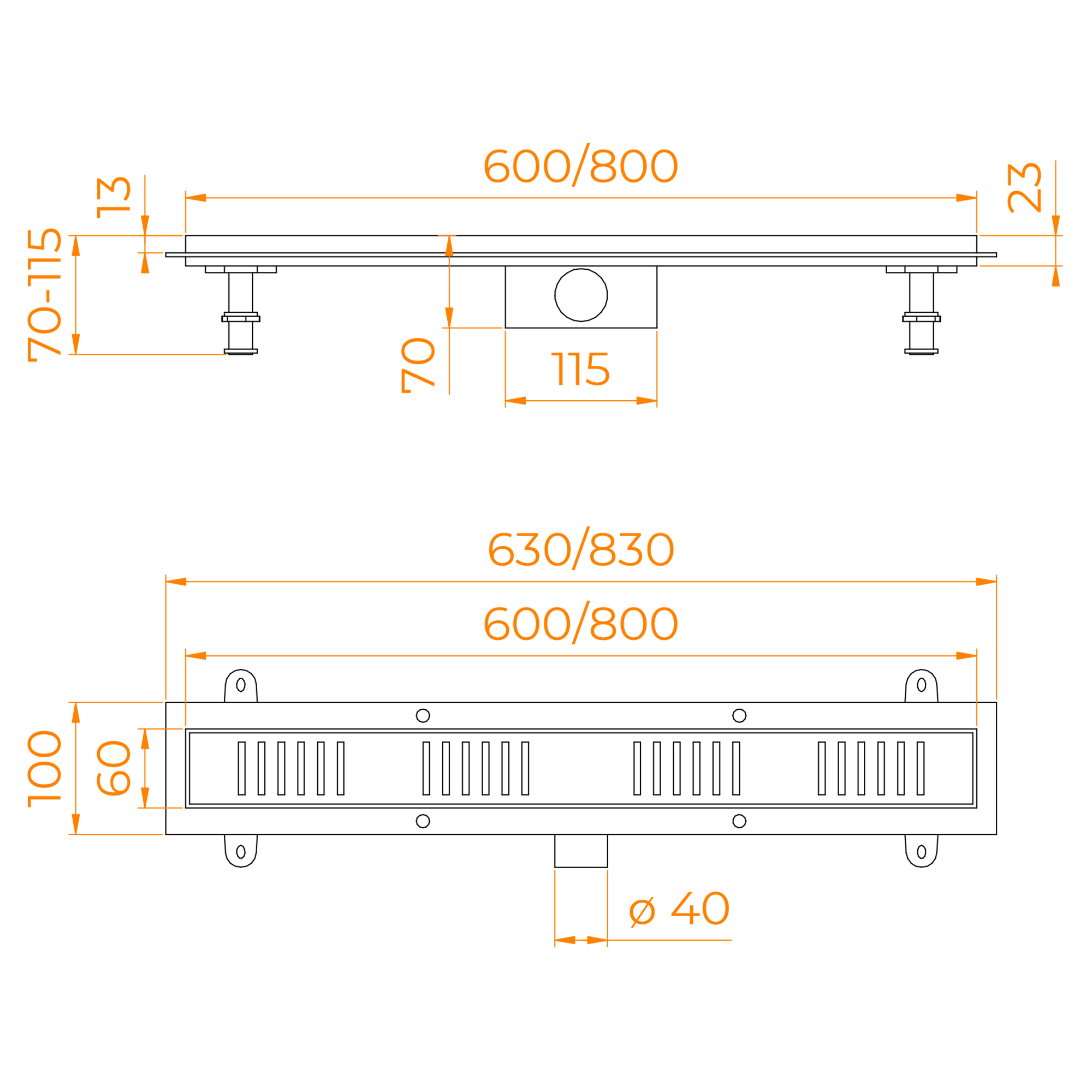 Небольшая монтажная высота (59 мм) и регулируемые опоры (59-90мм) облегчают установку;
