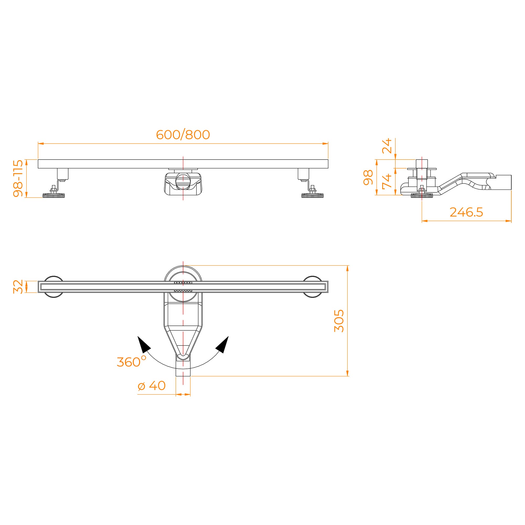 Две опоры из нержавеющей стали ISIA 304 с регулировкой высоты 98-115 мм.