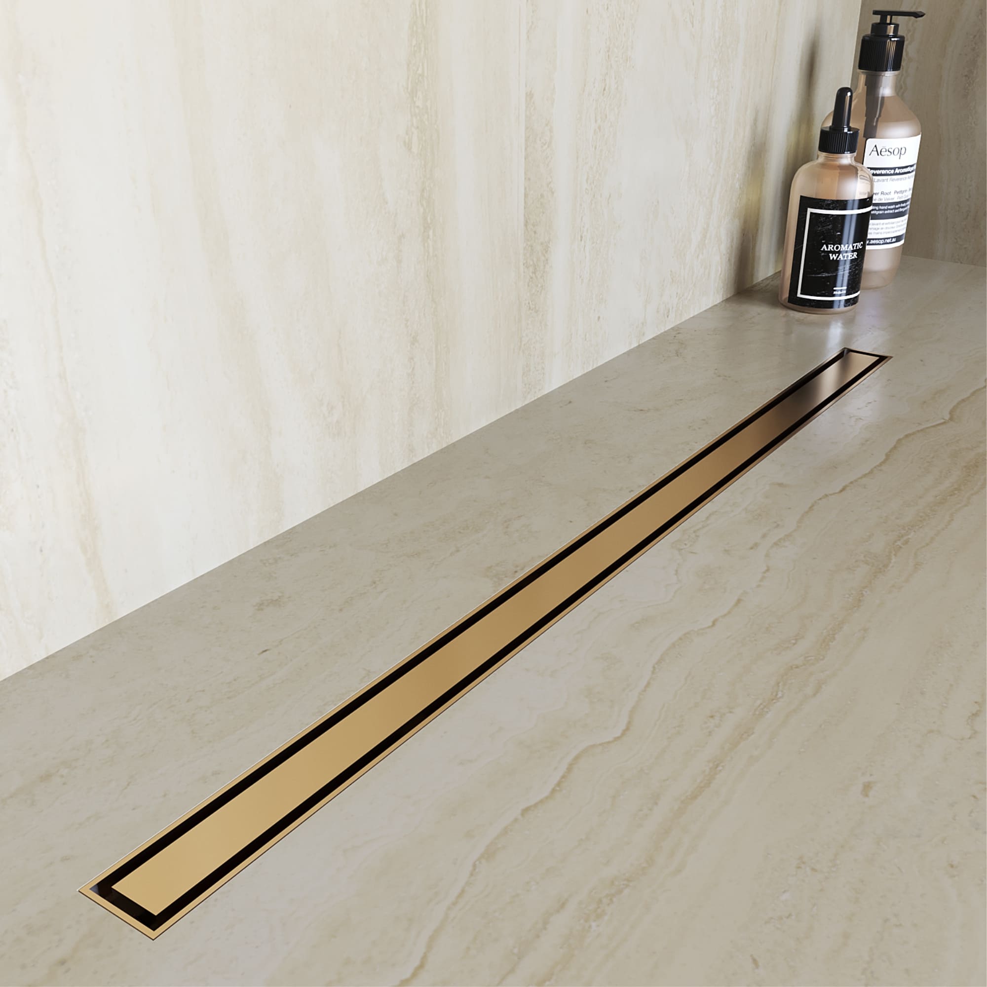 Душевой трап RGW SDR-51Gb толстостенный, золото браш, универсальный с металлической крышкой, сифон сухой и гидрозатвор + ножки
