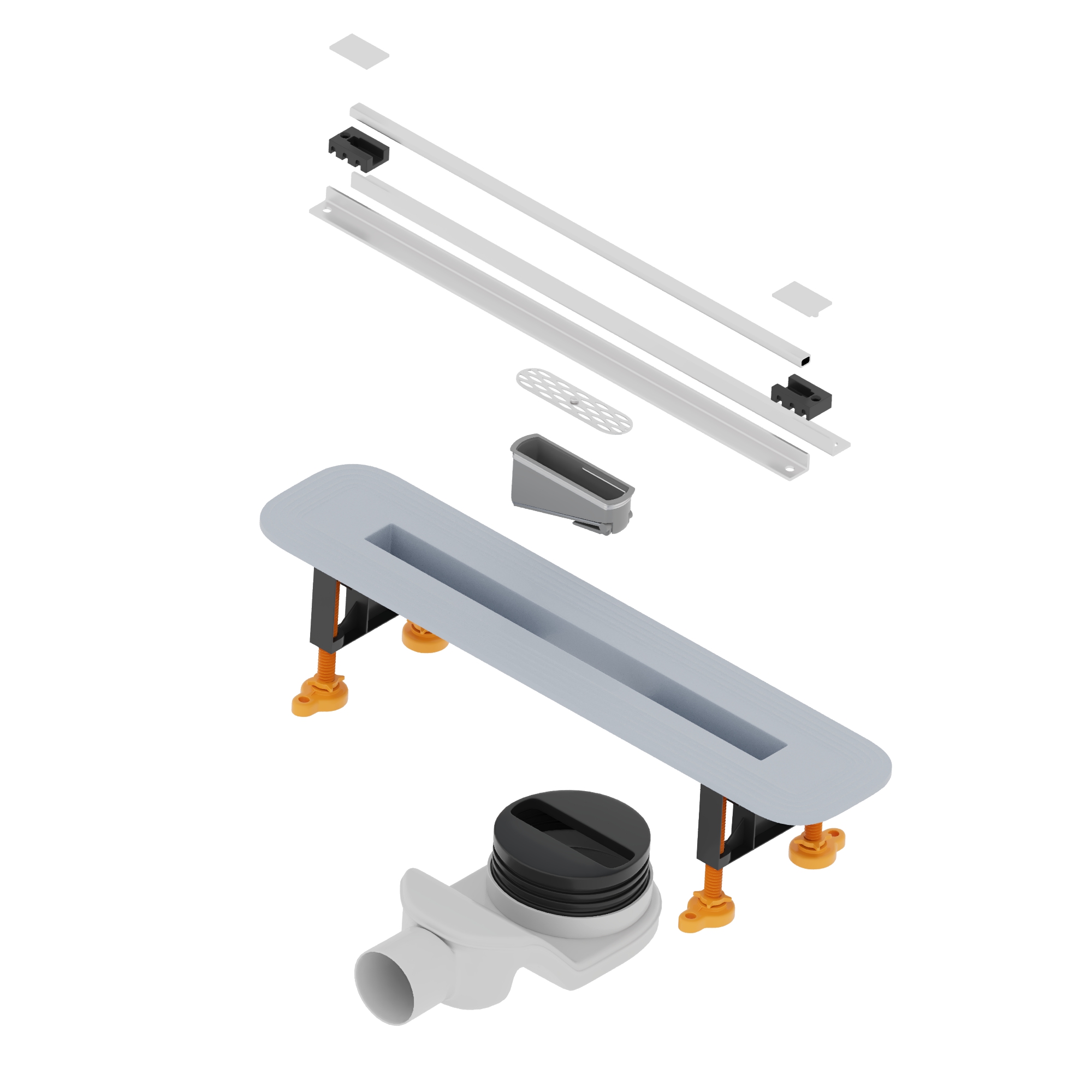 Душевой трап комплектуется усиленной опорной конструкцией: опоры (ножки) в количестве 4-х шт. + 2 специальных крепления для опор к трапу. Опоры и крепления выполнены из высокопрочного ABS-пластика. Ножки вкручиваются в каждое крепления по 2 шт., а крепления фиксируются на специальные полозья снизу лотка и легко передвигаются по длине трапа. Немецкие инженеры специально для компании RGW - Стильные Душевые разработали качественную систему опор под названием - tray bridge supports. Инновация в разработке опор в том, что регулировка высоты производится путём вкручивания или выкручивания опор из креплений, что значительно облегчит монтаж трапа.