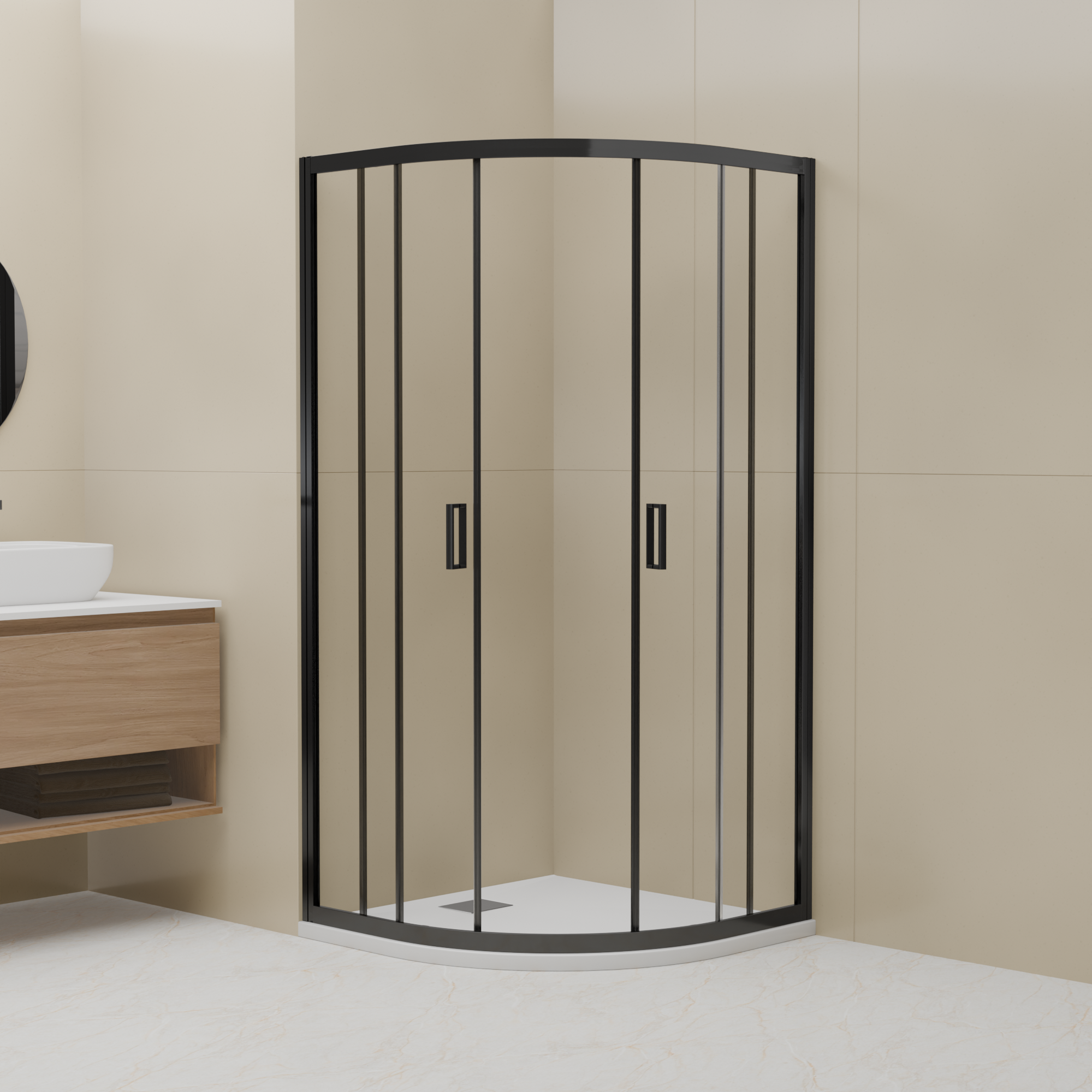 Следующим преимуществом является прозрачное стекло, которое визуально увеличивает пространство ванной комнаты и позволяет получить максимальное количество света. Черный цвет профиля придает душевому углу элегантный и модный вид, который идеально подходит для современных ванных комнат.