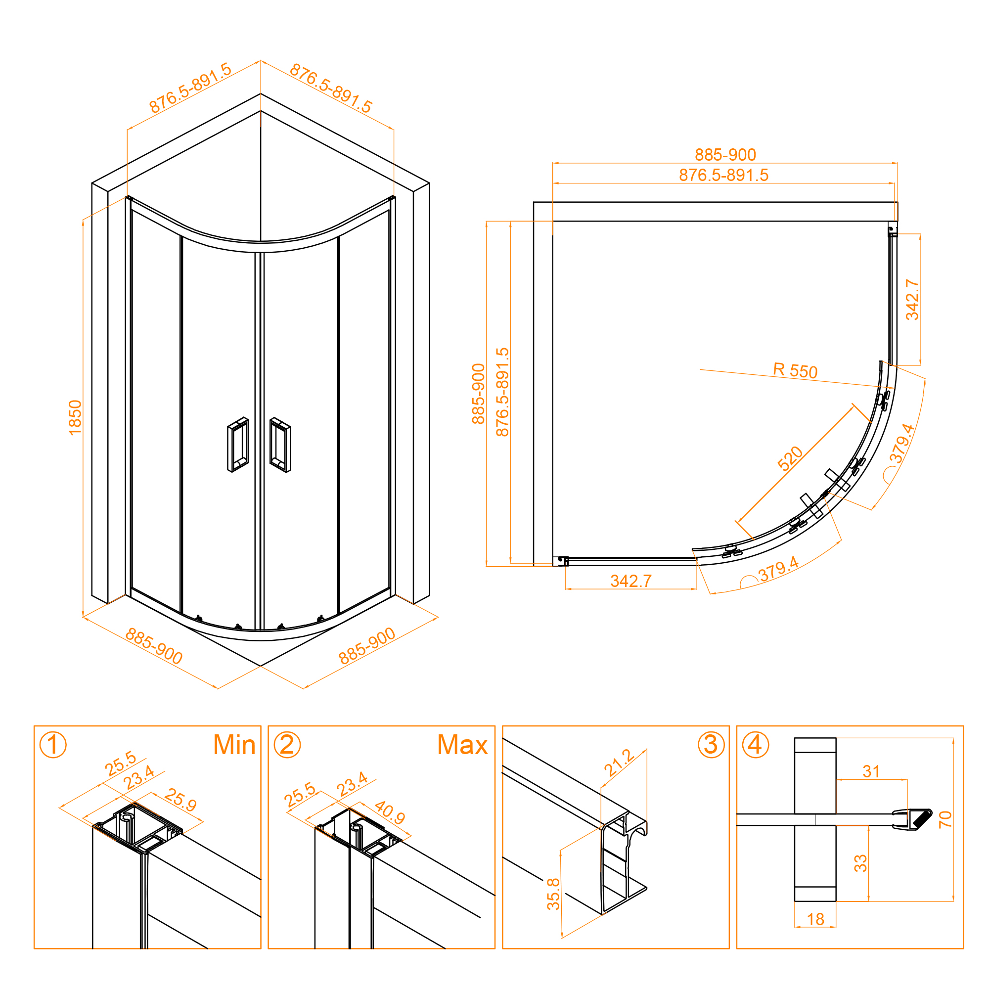 Стекло имеет покрытие анти капля Easy Clean, которое облегчает уход за душевым уголком и предотвращает появление пятен от воды и мыльной пены. Регулируемый профиль обеспечивает возможность регулировки размера уголка для того, чтобы он подходил для разных размеров ванных комнат.