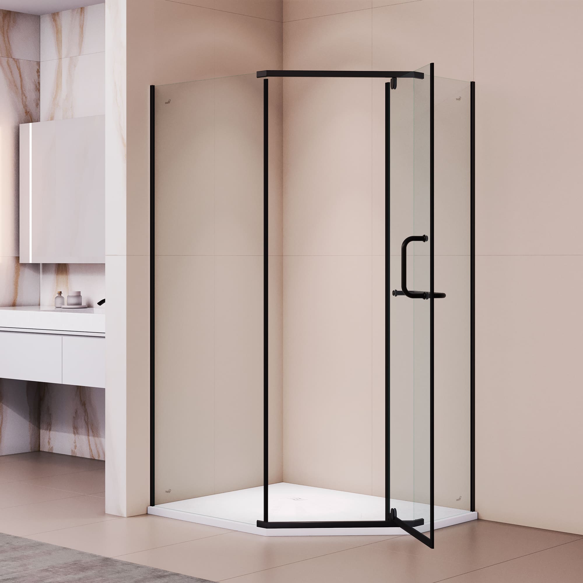 Цвет профиля этой душевой кабины — черный, что придает интерьеру вашей ванной комнаты современный и изысканный вид. Черный профиль идеально дополняет прозрачное стекло, создавая гладкую и цельную эстетику.