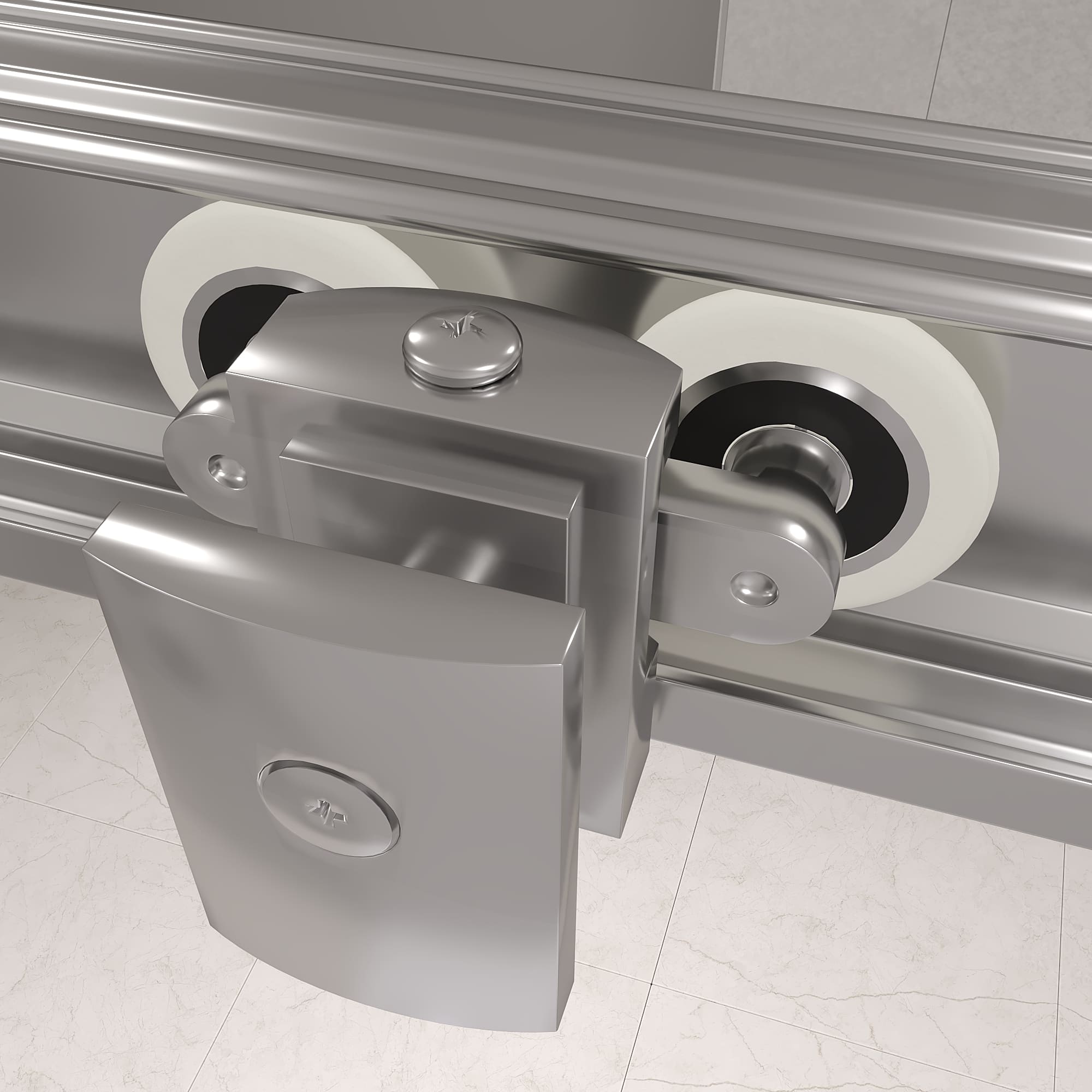 Двойные регулируемые ролики обеспечивают легкость открывания и закрывания дверей душевого уголка, а также плавность и бесшумность движения. Конструкция дверей раздвижная, что также способствует экономии места в ванной комнате.