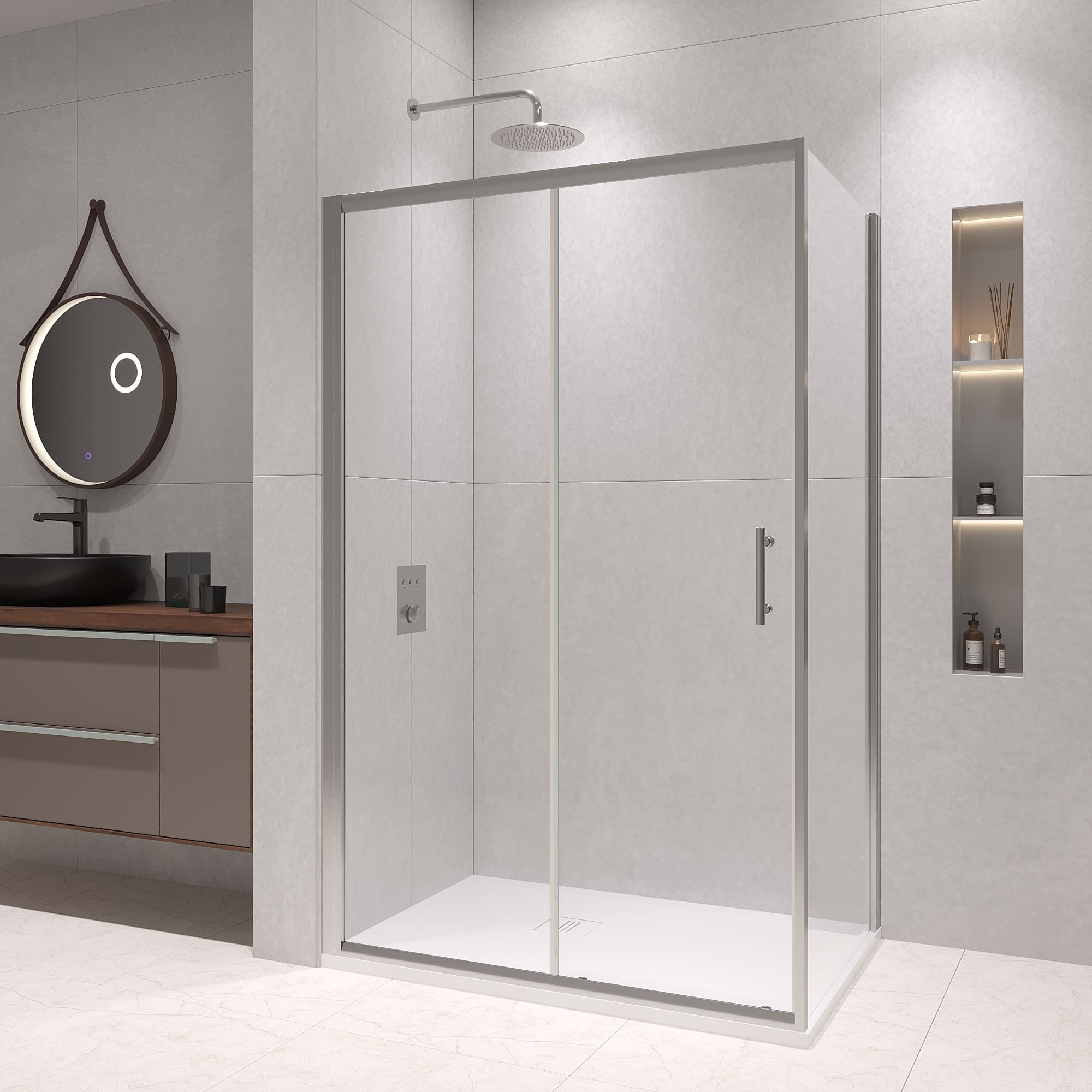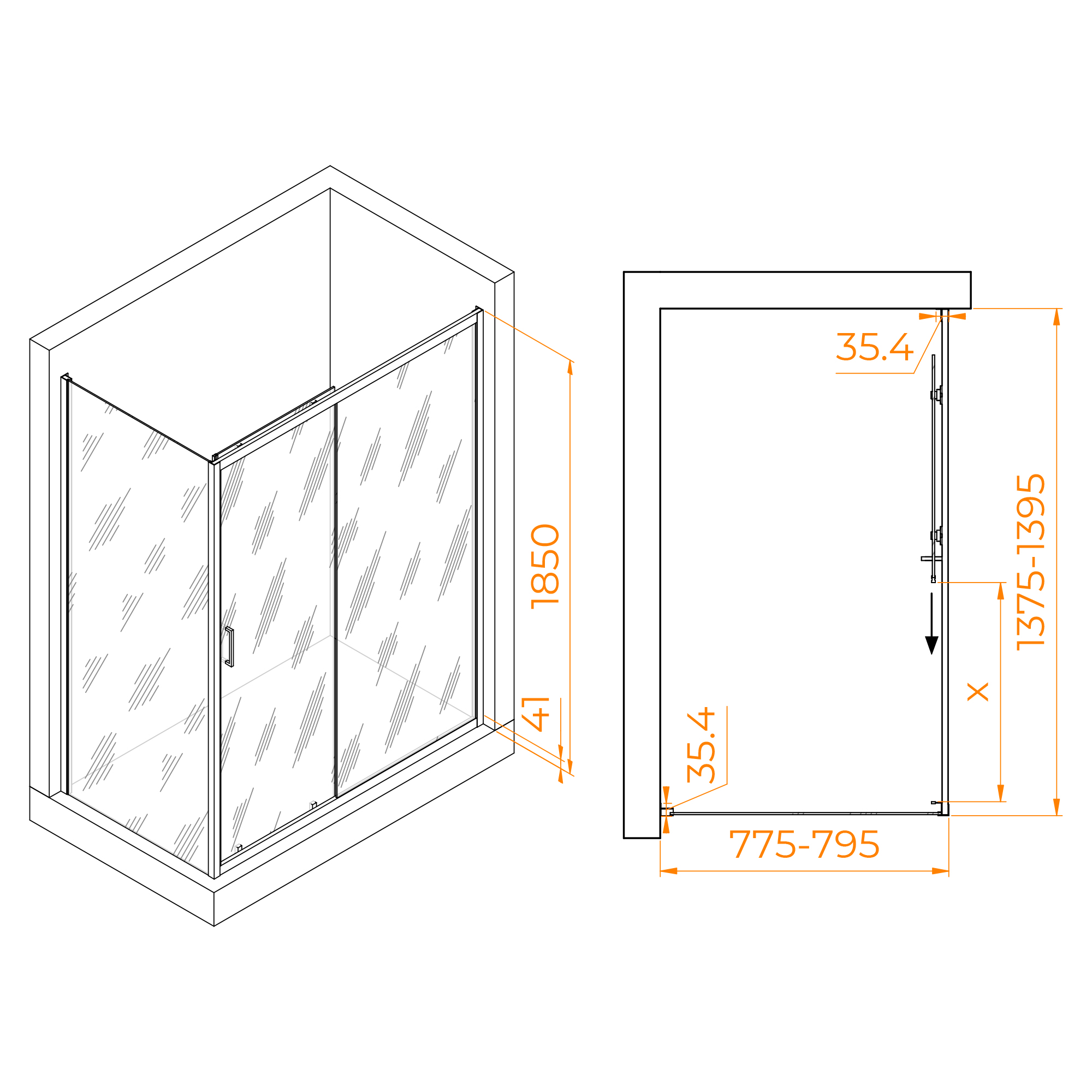 Душевой уголок имеет прямоугольную форму, которая позволяет эффективно использовать пространство в ванной комнате. Высота душевого угла составляет 1850 мм, что обеспечивает комфортное пребывание внутри него.