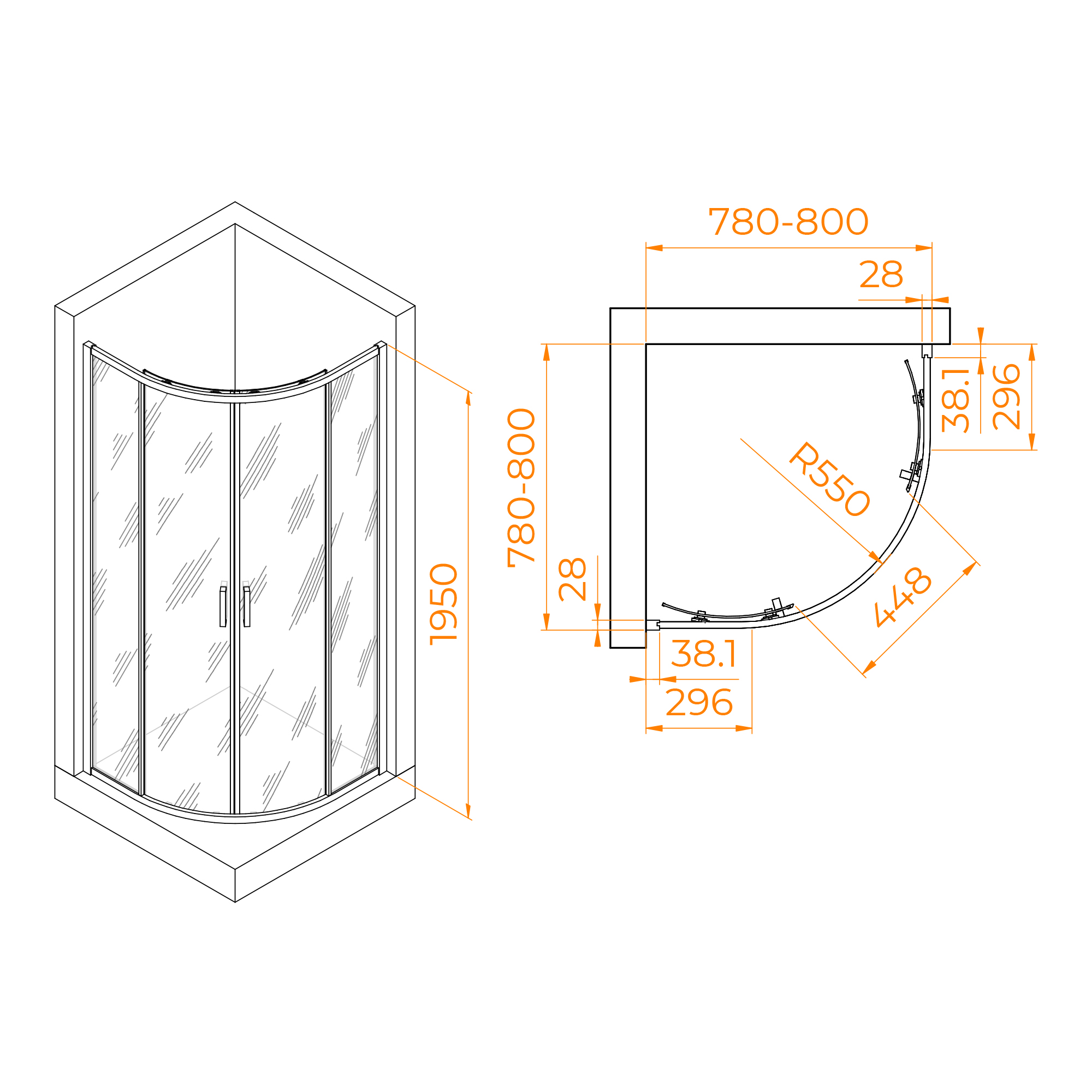 Высота данного душевого уголка составляет 195 см, что обеспечивает достаточное пространство для комфортного принятия душа. Высота, в сочетании с остальными параметрами, делает этот уголок идеальным выбором для семейного использования и для людей различного роста.
