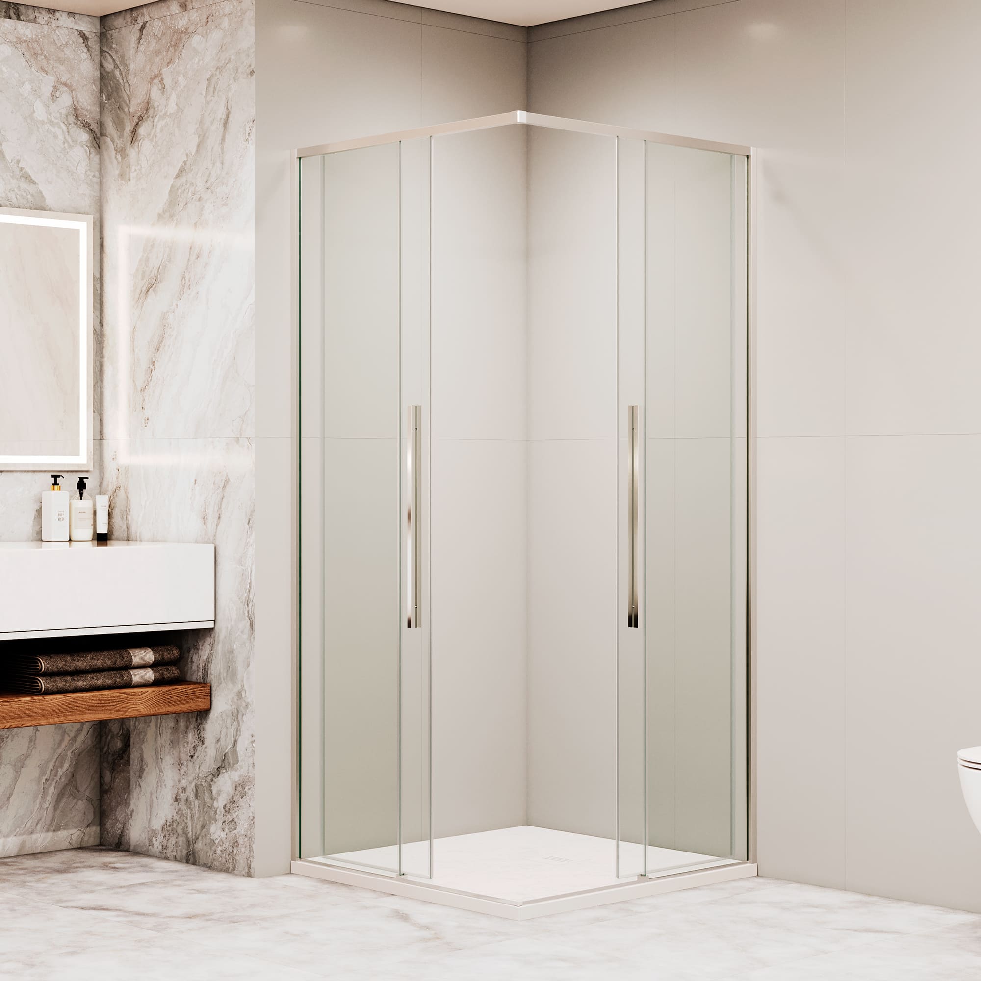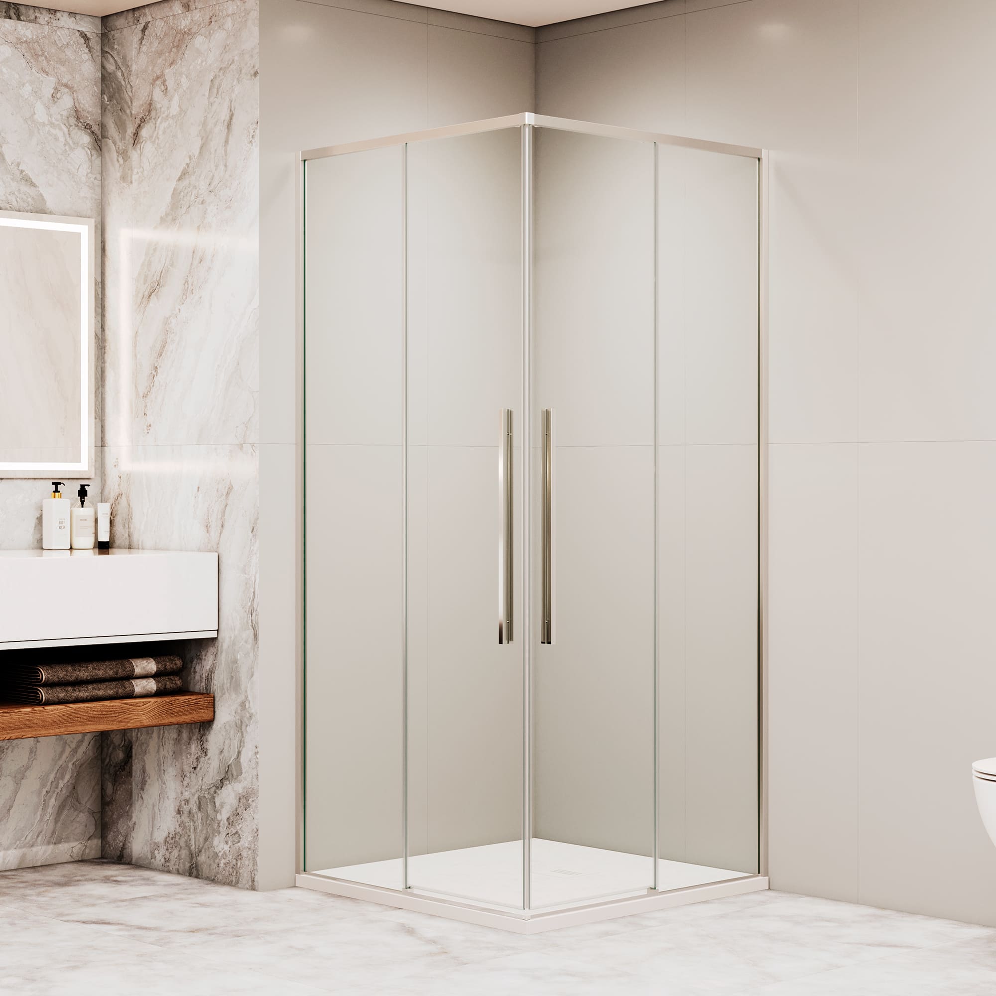 Душевой уголок имеет квадратную форму, что придает ему современный и элегантный вид. Цвет профиля выполнен в хромированном исполнении, что добавляет блеска и выразительности его дизайну, а также позволяет легко сочетаться с другими элементами интерьера.