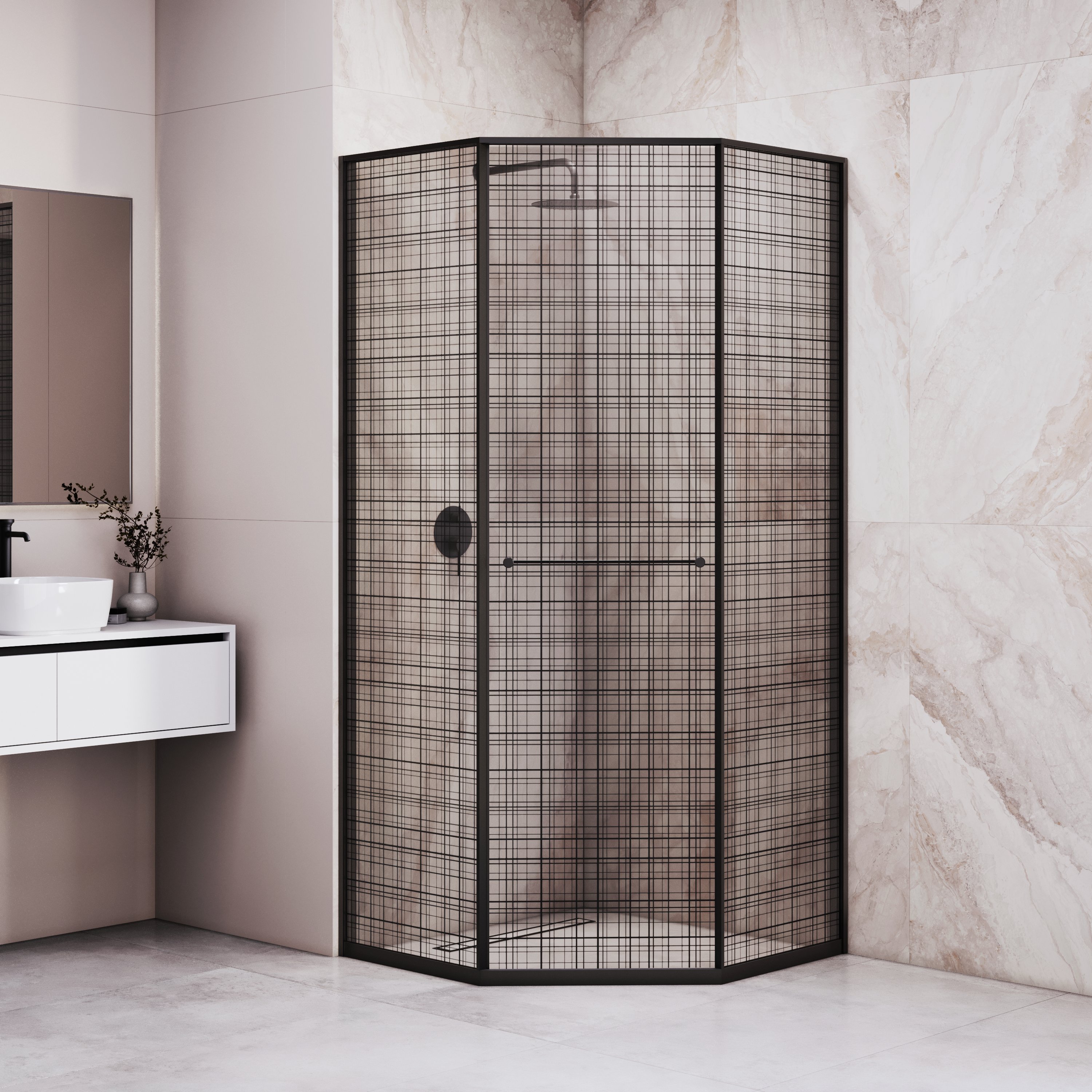 Инновационный механизм раздвижной системы при открытии плавно смещает дверь вдоль стационарного стекла при этом обеспечивая комфортный вход и просторное пространство внутри душевого угла.