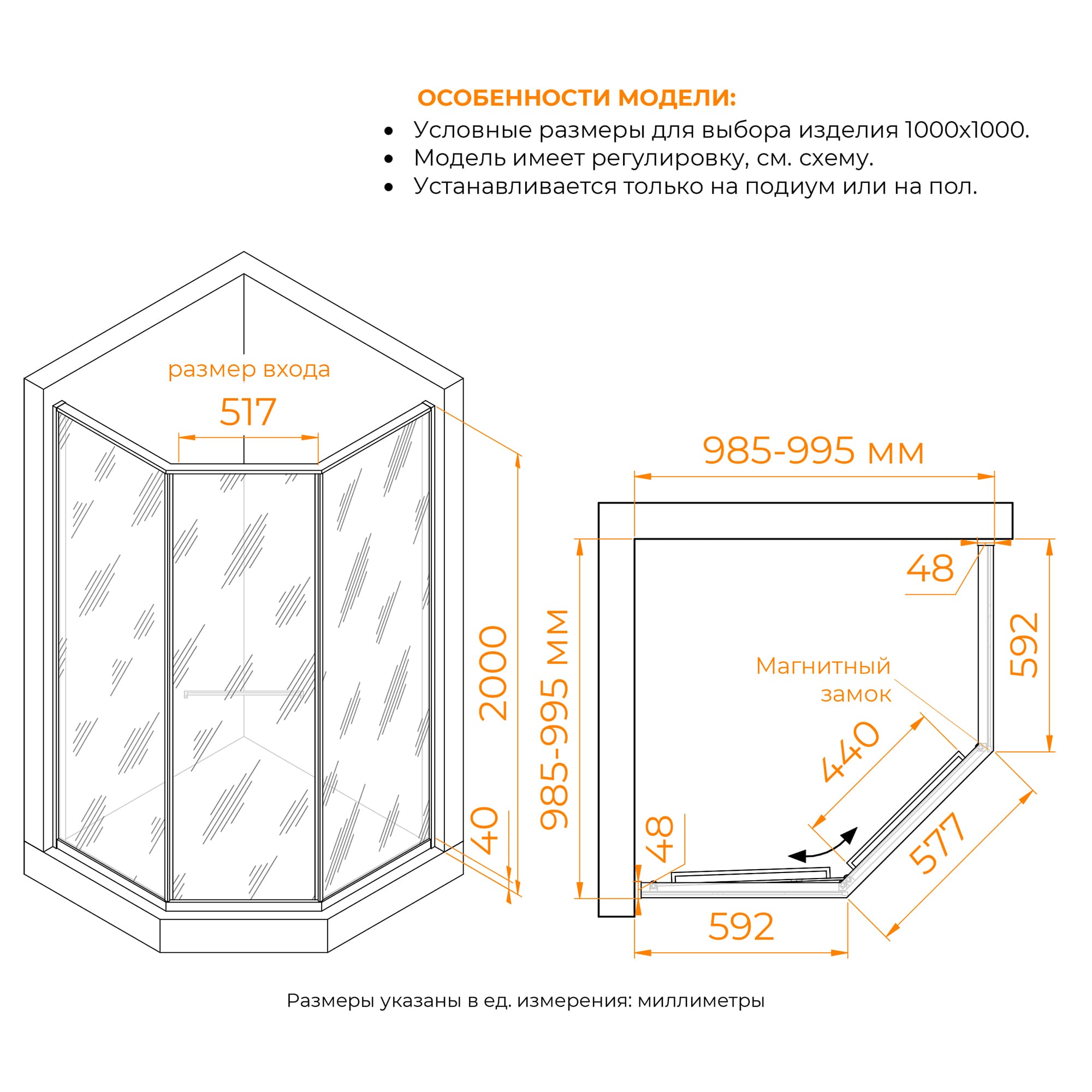 Душевые углы можно установить, как на плитку с трапом так и на поддон соответствующего размера. (с поддоном стандартного размера не совместим (см. схему изделия)