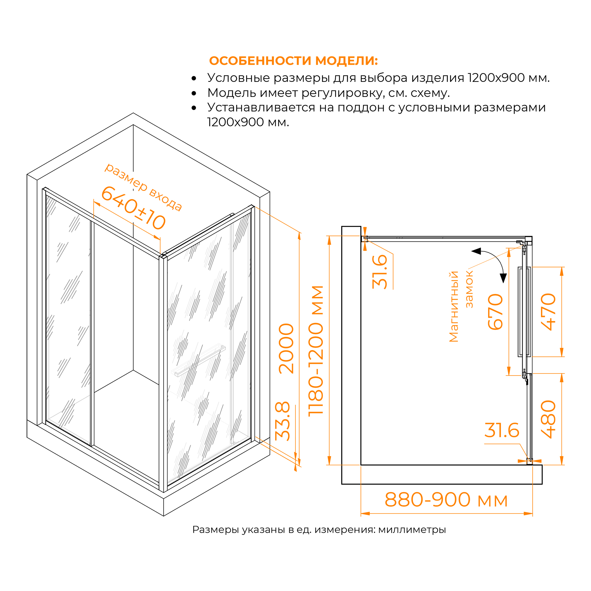 Размеры (Д×Ш): 1000×800, 1000×900, 1200×800, 1200×900, 1200×1000 мм