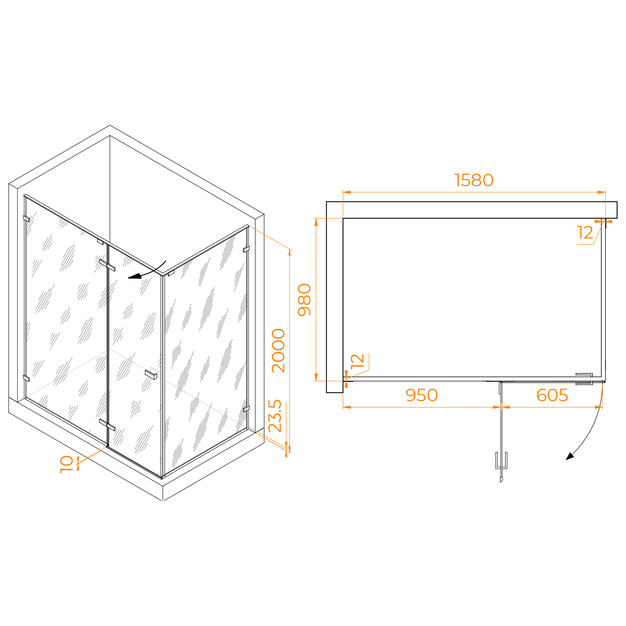 Душевой уголок универсальный, на любую сторону открытия двери, высотой 2000 мм.