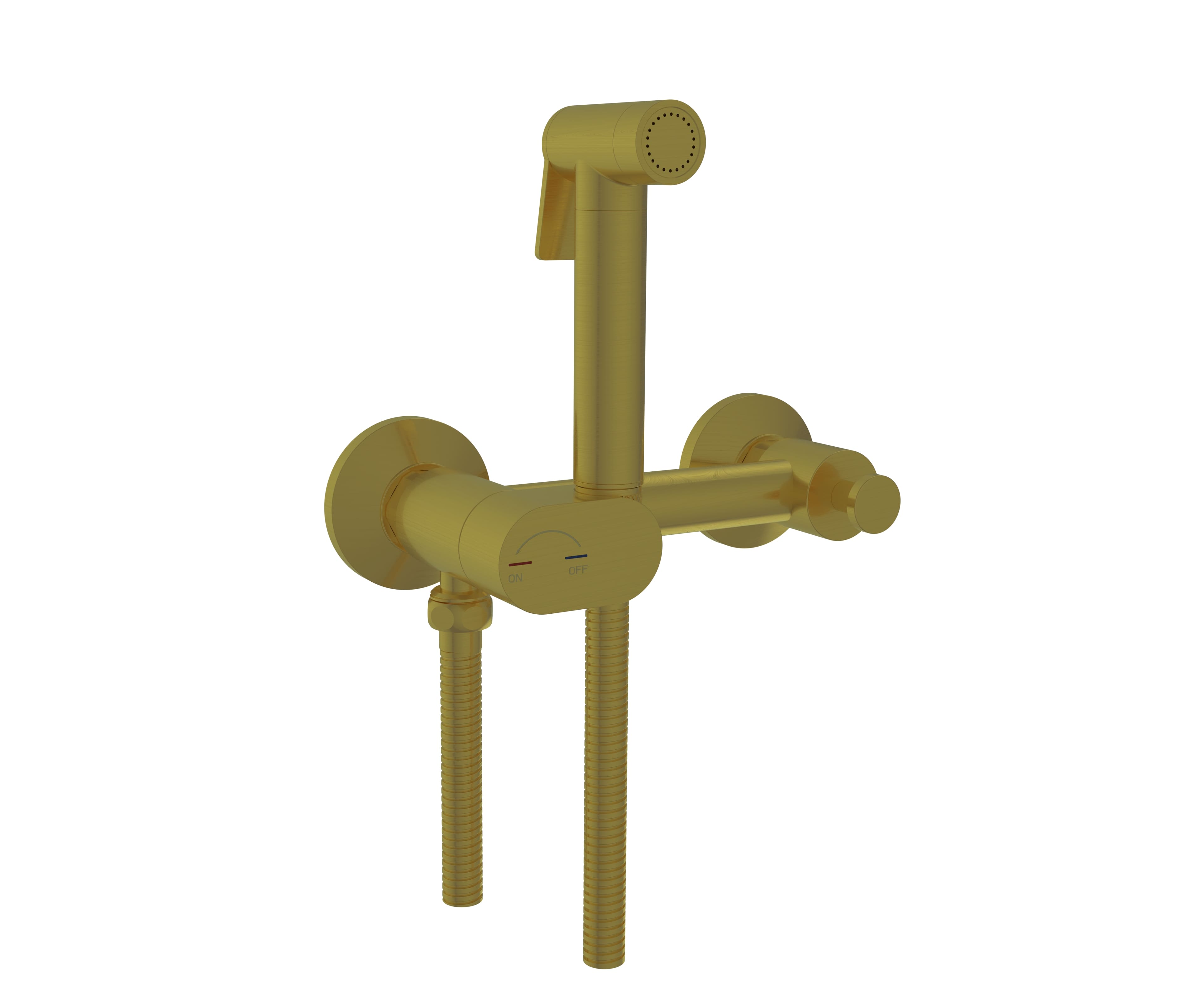 Гигиенический душ в цвете золото Brush (брашированное матовое золото) и серый гигиенический душ — оружейная сталь (вороненная сталь) — краска элементов фурнитуры достигается путем PVD. PVD-покрытие (Physical Vapor Deposition) — это современный метод нанесения тонких износостойких покрытий вакуумным способом.