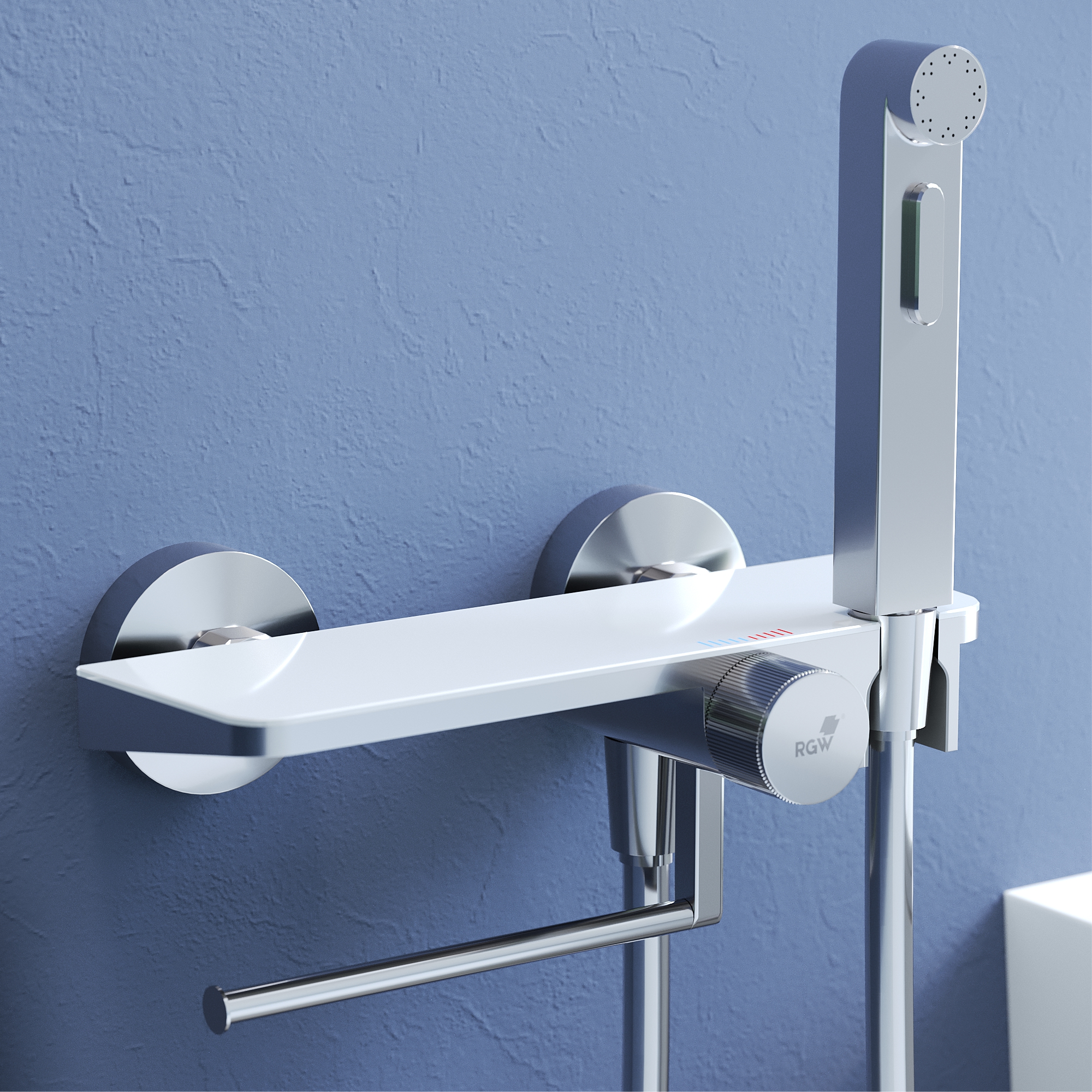 Гигиенический смеситель со стеклянной полкой, настенный - RGW SP-220, хром