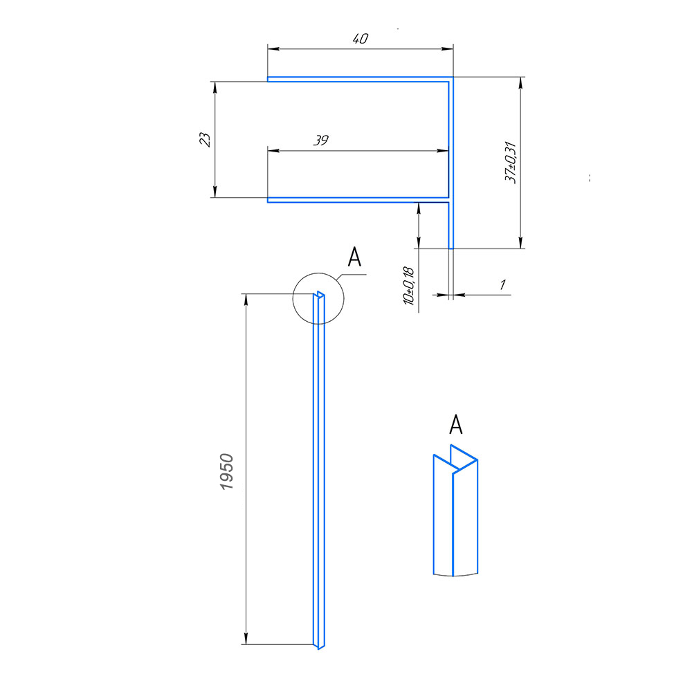 Профиль пристенный для углов. Цвет хром Высота 195 мм
