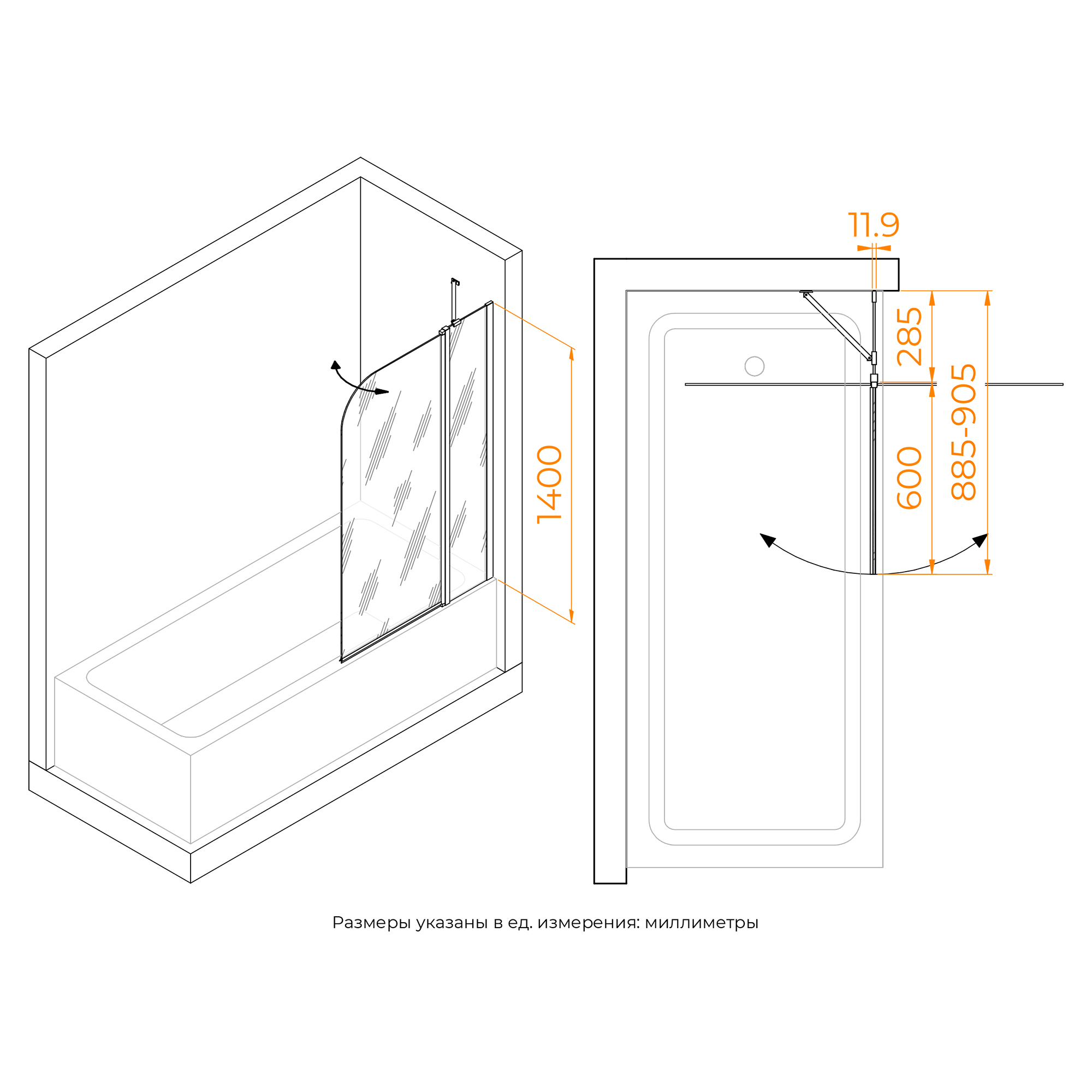 Стеклянная Шторка на ванну RGW SC-011 - это идеальное решение для тех, кто хочет создать уютную и стильную обстановку в своей ванной комнате. Эта шторка на ванну предназначена для монтажа на ванну с размерами до 1400 мм в высоту и имеет толщину стекла 6 мм.