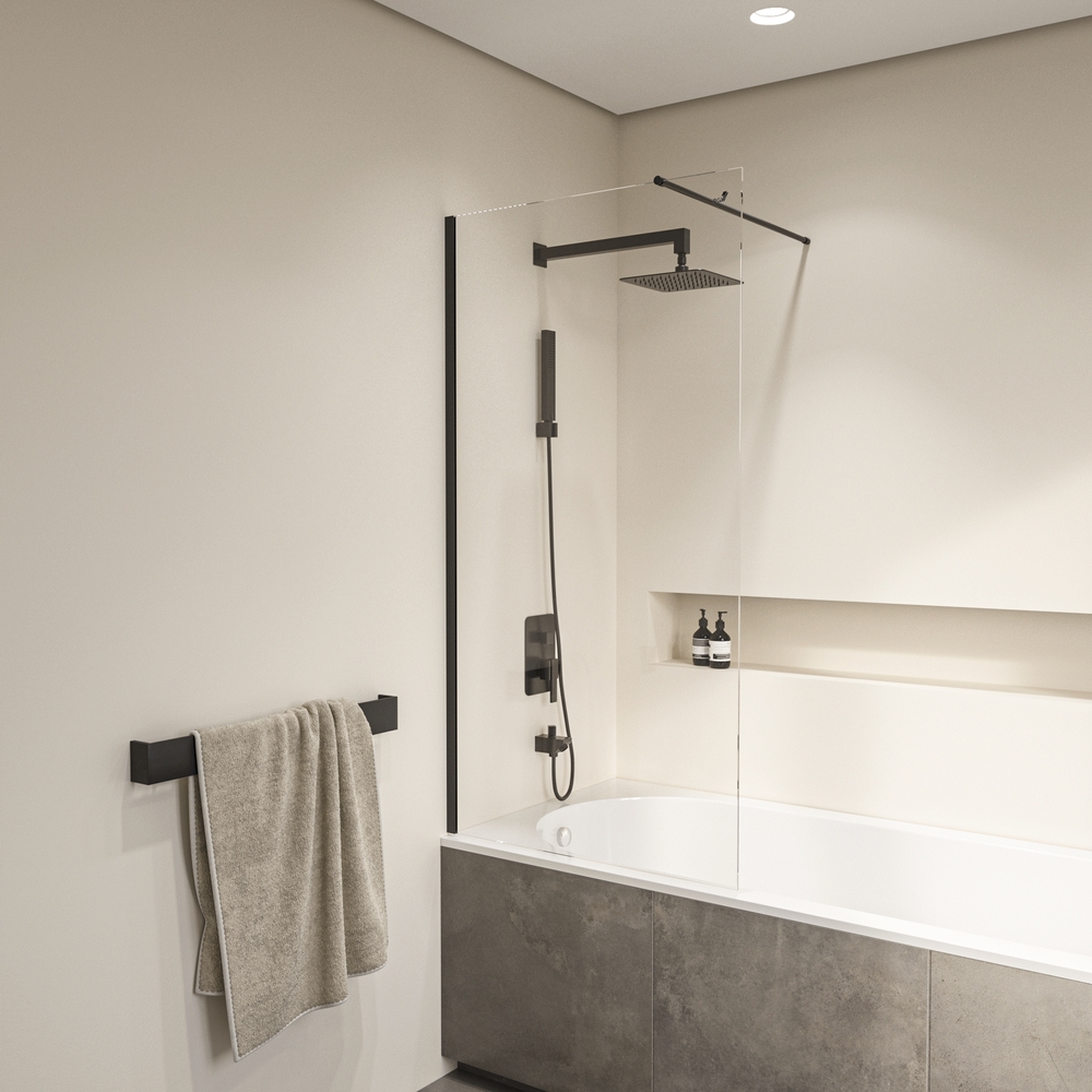 Цвет профиля шторки черный, что придает ей особенную изящность и элегантность. Этот цвет всегда в моде и отлично сочетается с любым цветовым решением ванной комнаты.
