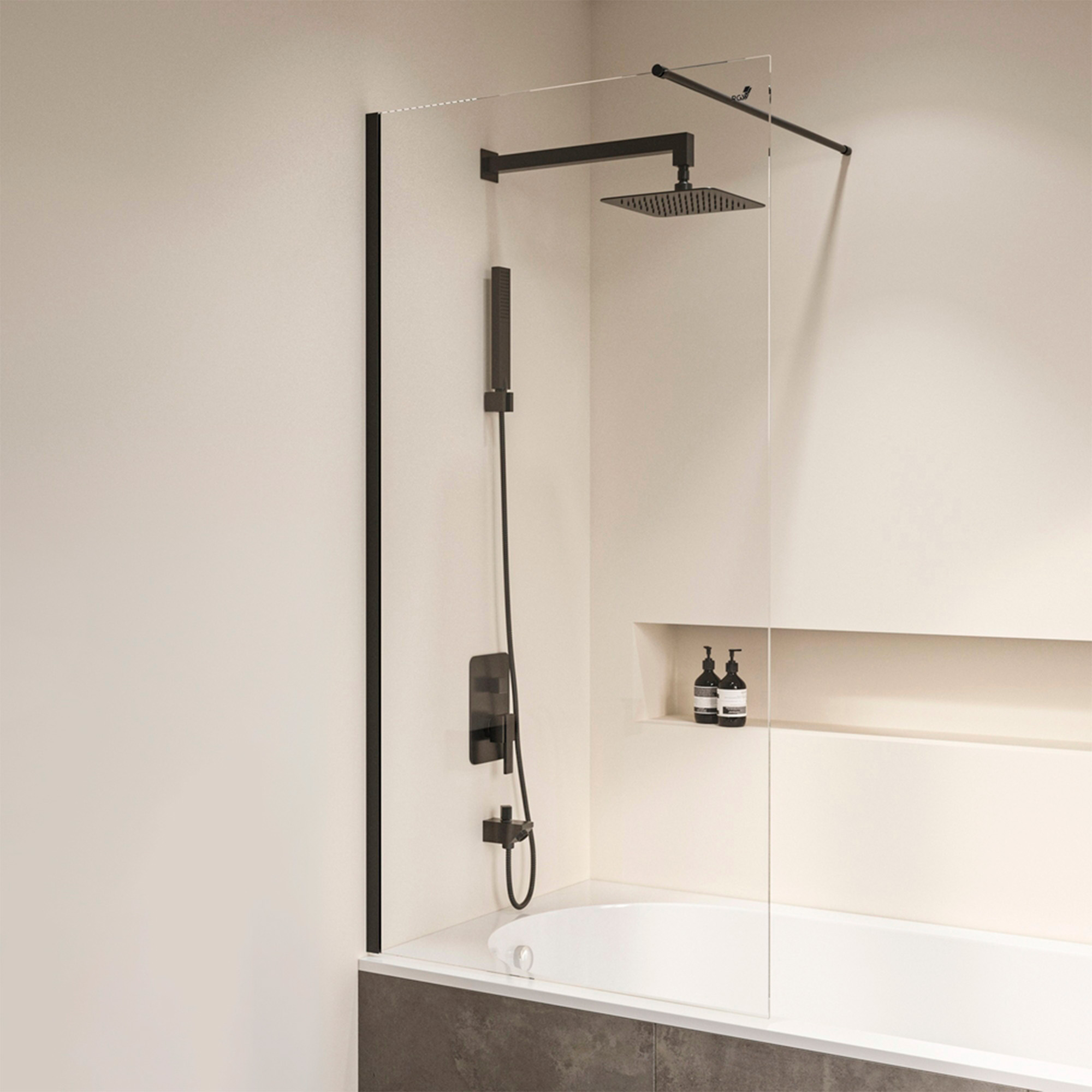 Цвет профиля шторки черный, что придает ей особенную изящность и элегантность. Этот цвет всегда в моде и отлично сочетается с любым цветовым решением ванной комнаты.