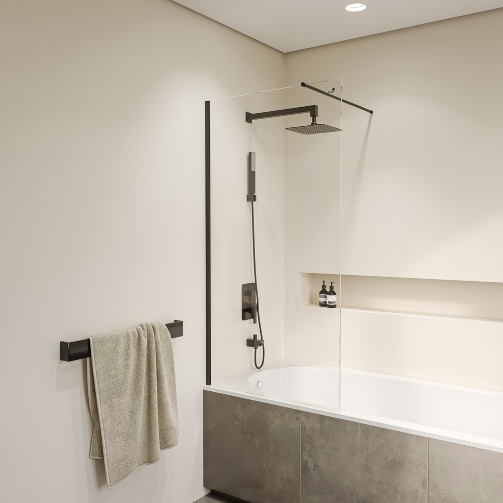 Красивый черный профиль из анодированного алюминия дополнительно подчеркивает современный дизайн шторки и гарантирует ее долговечность. Высота стеклянной шторки составляет 1500 мм, что идеально подходит для большинства размеров ванн. Шторка оснащена покрытием стекла Easy Clean, которое облегчает ее очистку и сохраняет ее в первоначальном состоянии на протяжении всего эксплуатационного периода.