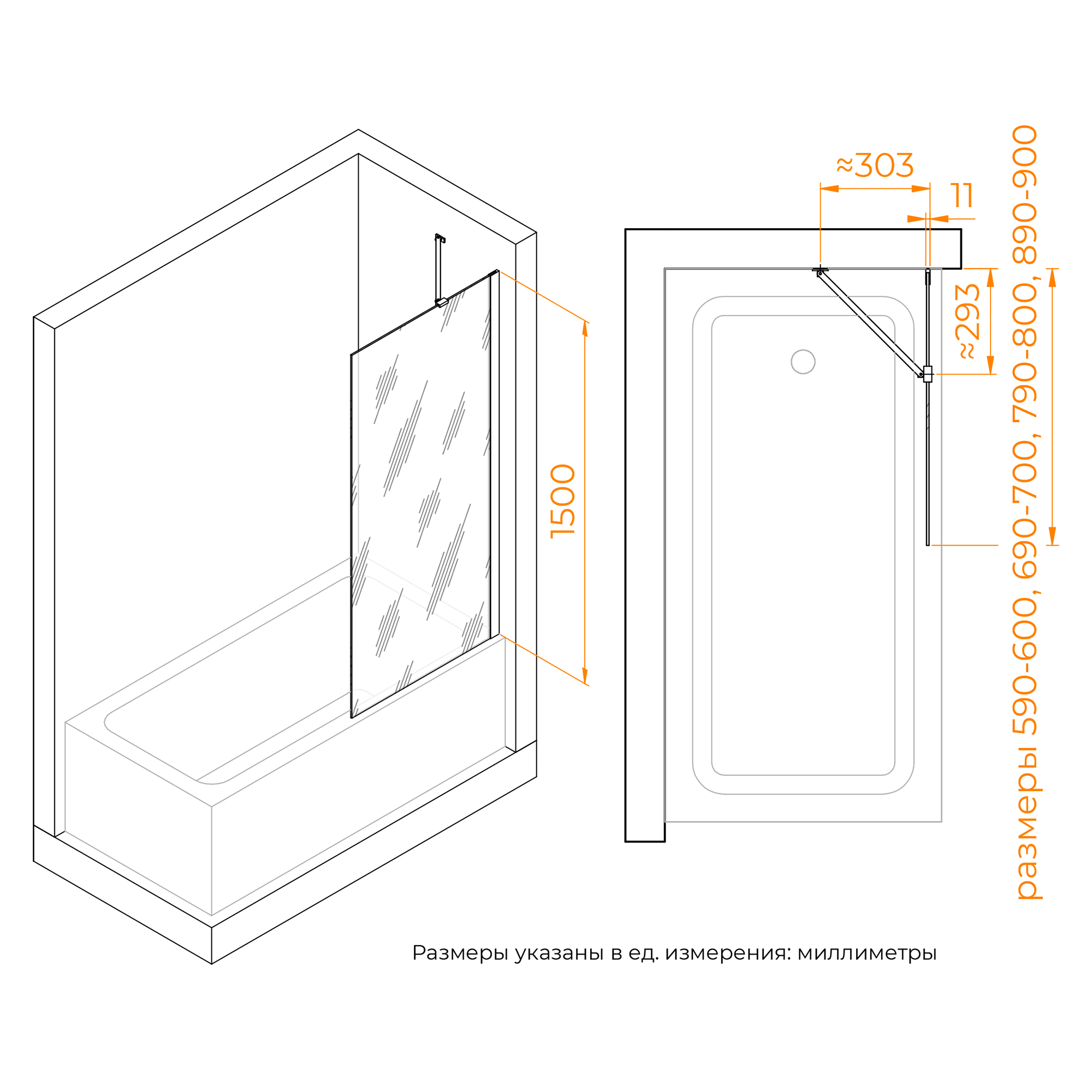 Уникальная конструкция позволяет адаптировать шторку к особенностям стен, нивелируя возможные неровности, а функция универсальной установки позволит закрепить ее на любой стороне ванны.