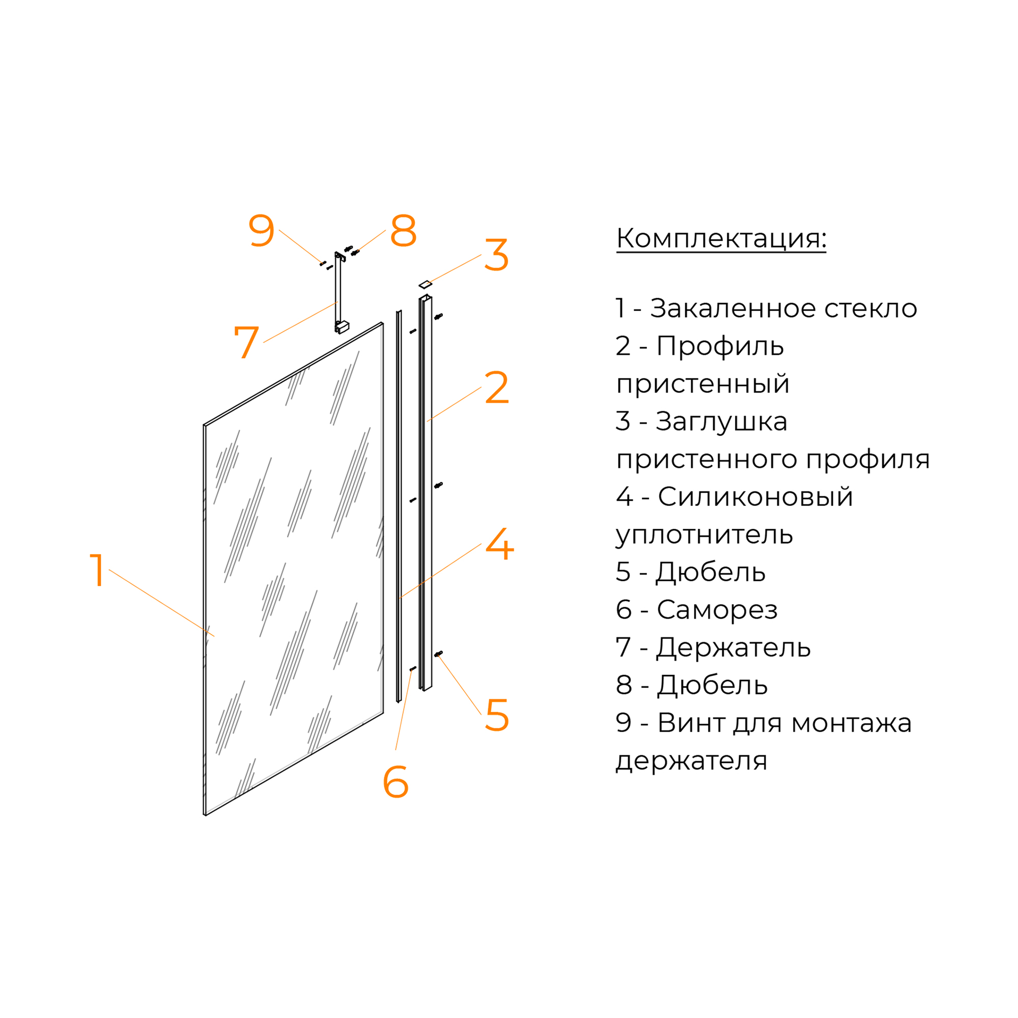 Шторка на ванну с держателем RGW SC-151. Толщина закаленного, безопасного стекла 8 мм.