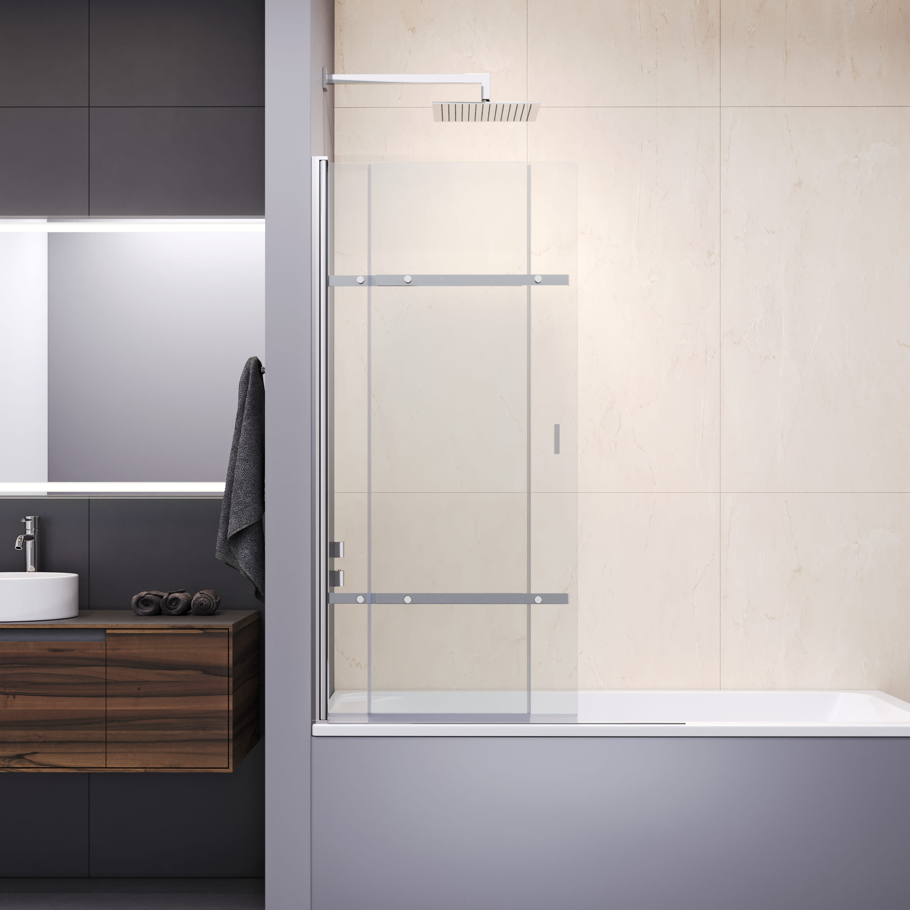 Цвет профиля изделия хром, что придает ванной комнате современный и стильный вид. Конструкция створки шторки маятниковые, что позволяет легко открывать и закрывать дверь, не забивая место в комнате.