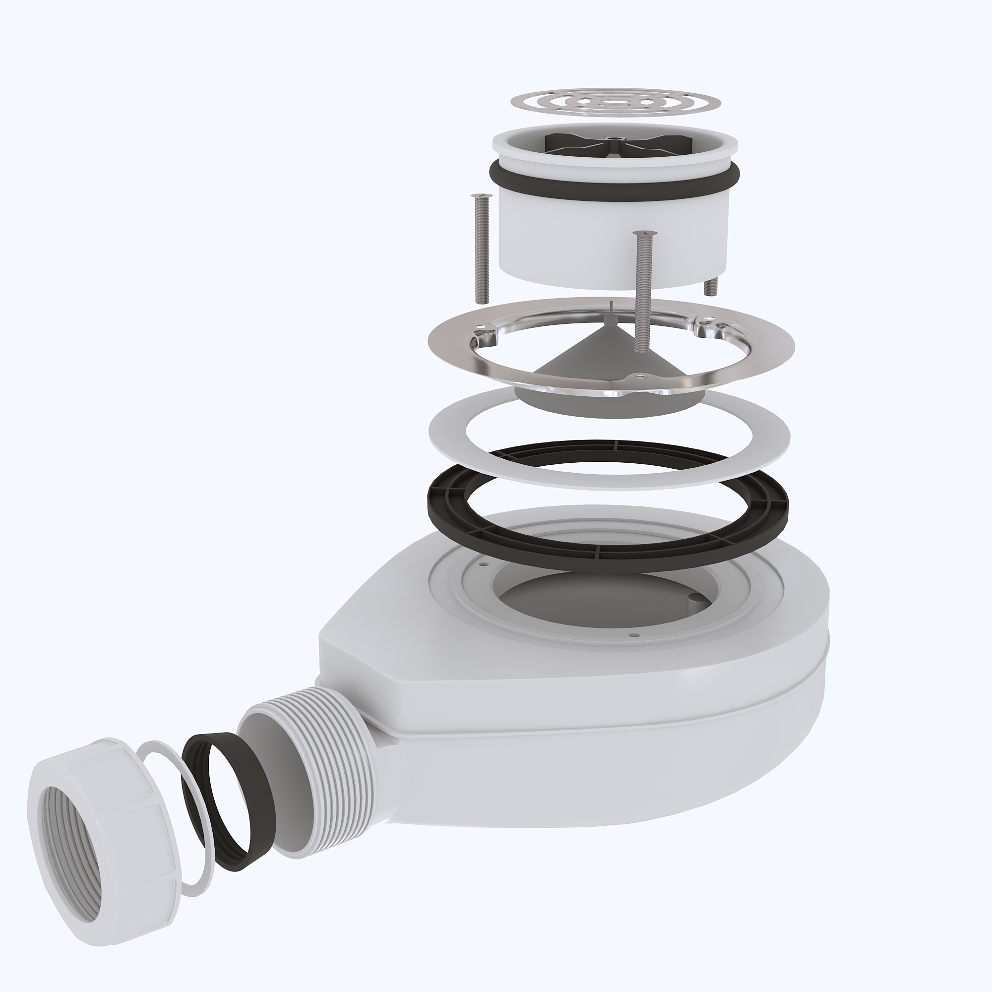 Сифон RGW S-010 для душевых поддонов с решеткой из нержавеющей стали.