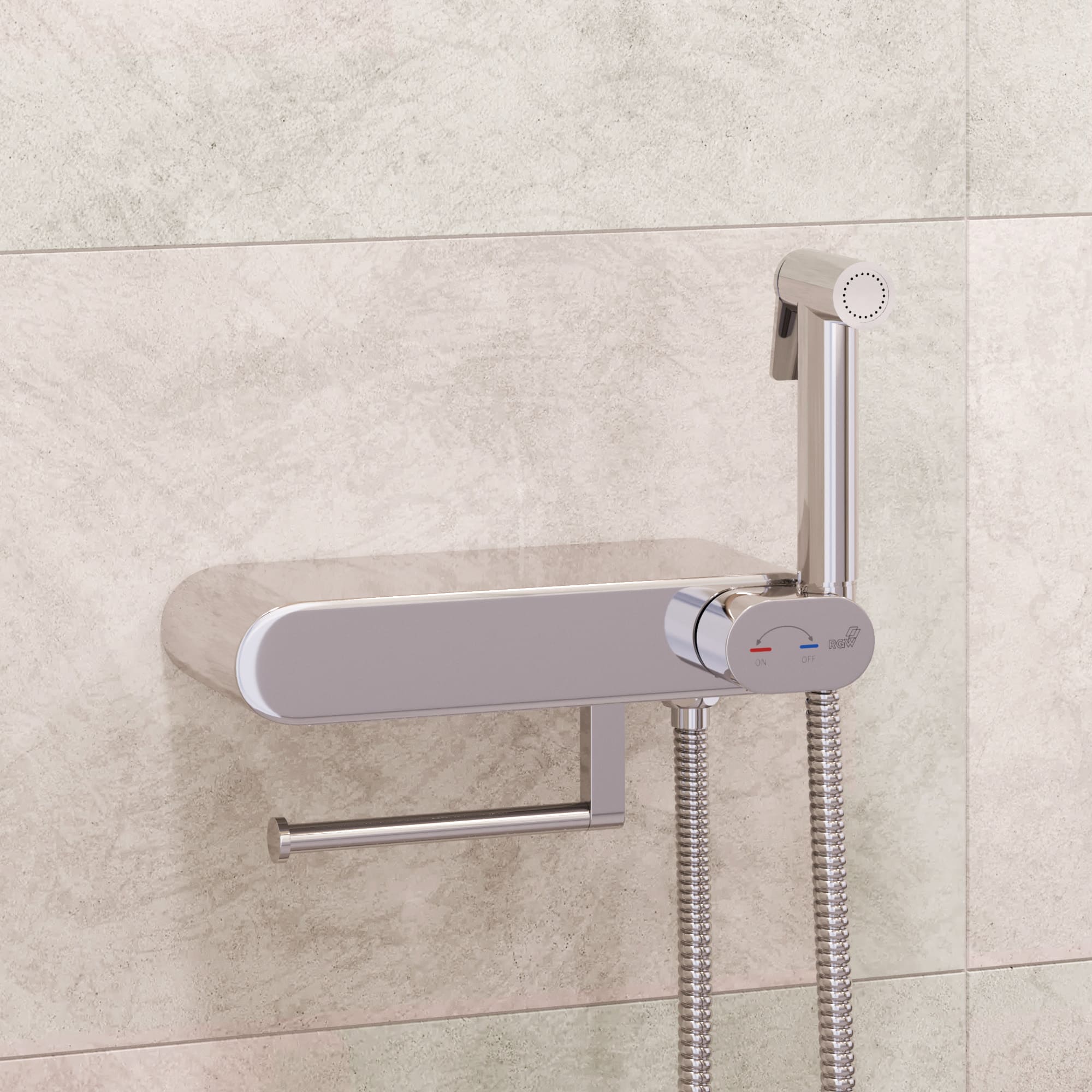 Смеситель гигиенический настенный - RGW SP-222, с полочкой с держателем туалетной бумаги или полотенца, хром