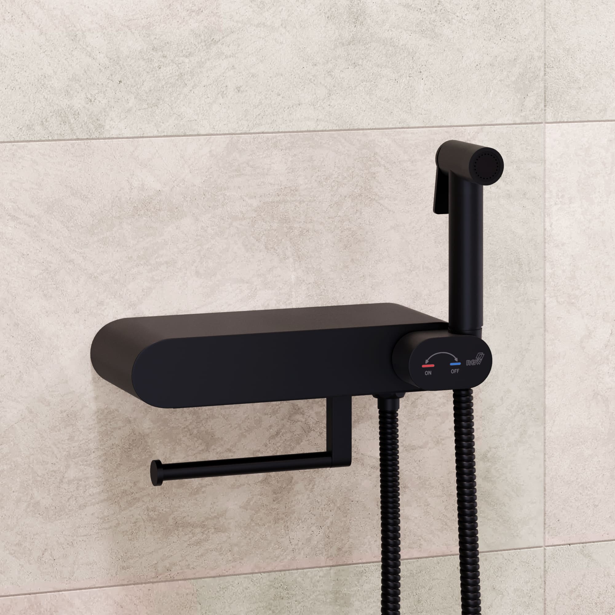 Смеситель гигиенический настенный - RGW SP-222B, с полочкой с держателем туалетной бумаги или полотенца, черный