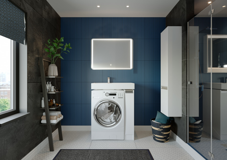 Тумба Лондри под стиральную машину выполнена из влагостойкой ламинированной плиты в древесной отделке. Корпус тумбы и фасад приобретаются отдельно. Тумбы комплектуются фасадами как с такой же древесной текстурой, так и в универсальном белом глянцевом цвете – это позволяет выбрать модель тумбы в соответствии с личными предпочтениями, создав наиболее удачное решение для конкретного интерьера ванной комнаты. Более того, при желании в одной тумбе можно совместить корпус и фасады в двух разных по оттенку древесных декорах. За фасадом тумбы скрывается удобная бутылочница. Открытие тумбы Лондри осуществляется за фасад благодаря эргономичному выпилу под углом. Ящик состоит из двух отделений: верхнего и нижнего. Каждое отделение ящика выдерживает нагрузку до 20 кг. Тумба комплектуется раковиной Рейн 80 из прочного литого мрамора. Компактный размер данного комплекта подойдет для небольших ванных комнат и обеспечит место для хранения необходимых предметов и аксессуаров. Дополнительно к тумбе можно приобрести шкаф-колонну Лондри и зеркальный шкаф Лондри 80.