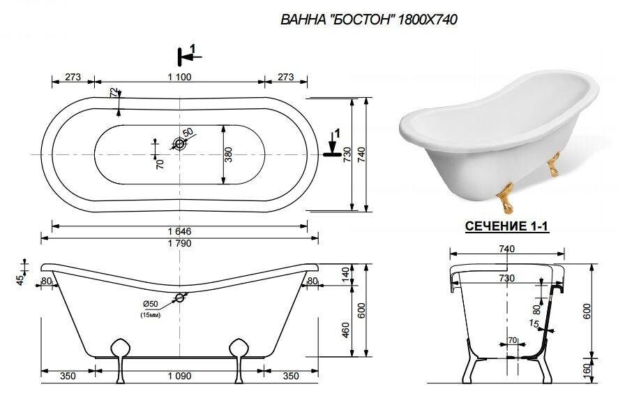 Стильная ванна с удобными подголовниками позволит Вам снять напряжение и усталость. Благодаря своей изящности ванна Бостон прекрасно дополнит любой интерьер.