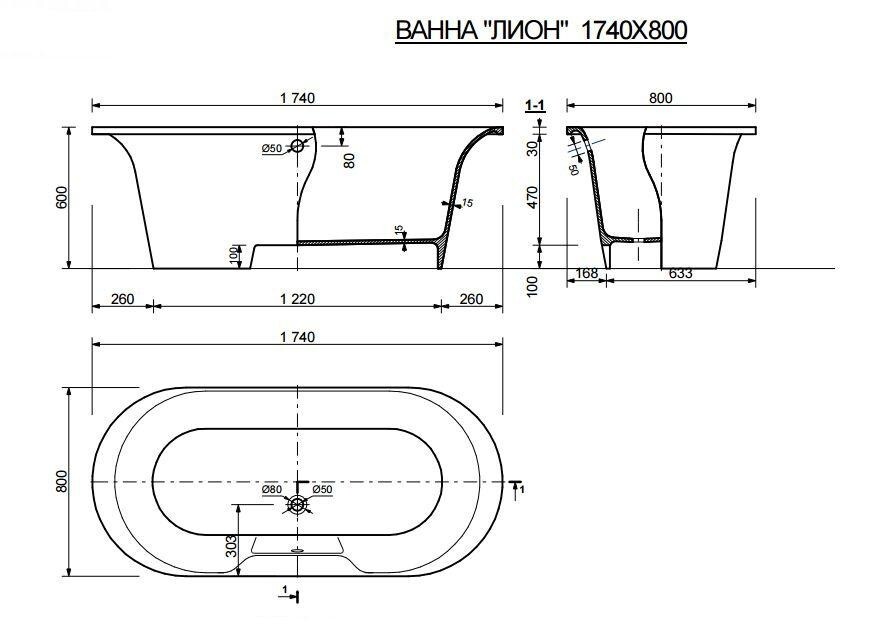 Ванна из искусственного камня Эстет Лион 174х80 ФР-00000684